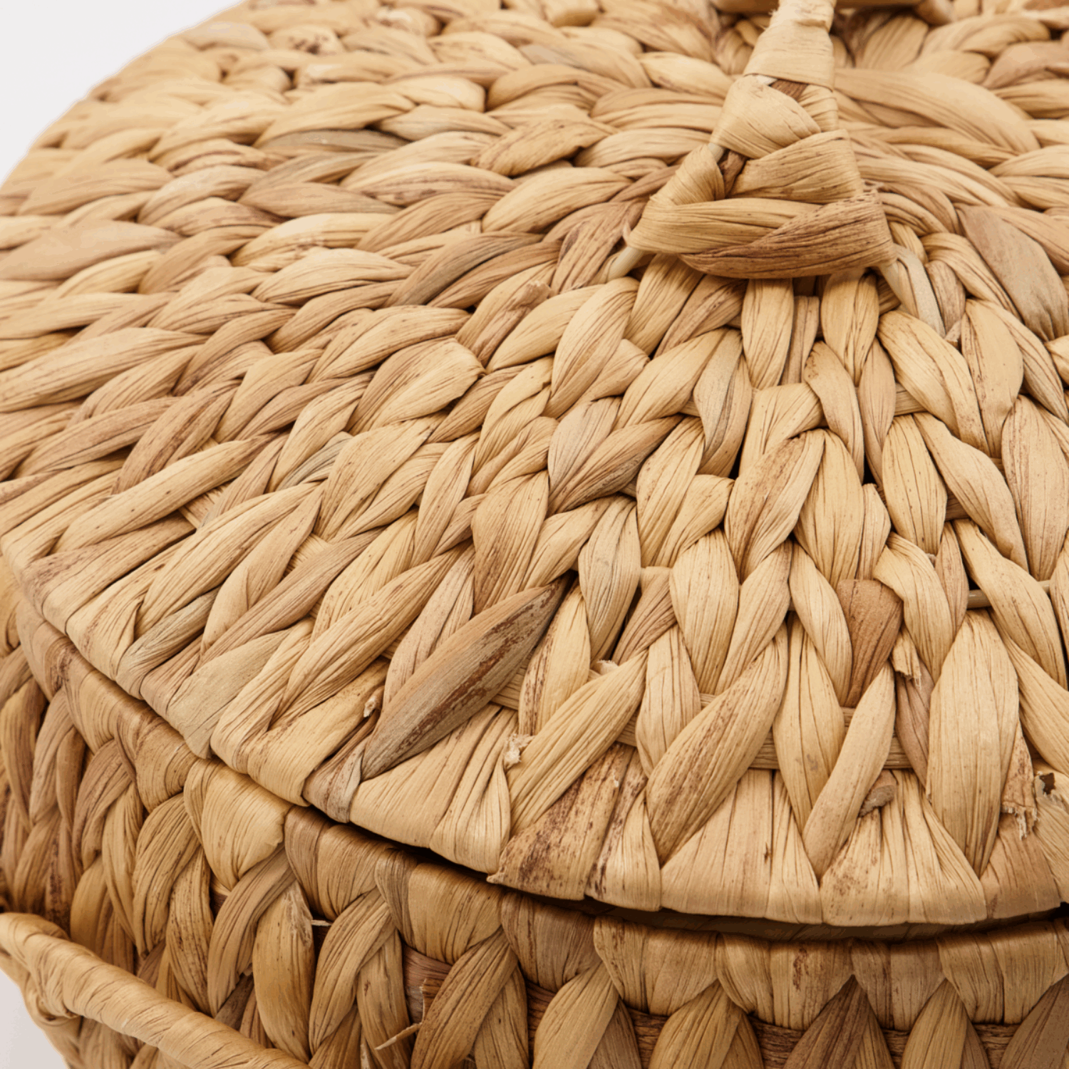 Hver kurv har tilhørende lokk og praktiske håndtak på både kurv og lokk, noe som gjør dem enkle å flytte etter behov. Bruk dem til å lagre alt fra magasiner og strikketøy til småting på kjøkkenet eller i gangen. Rata-serien passer perfekt sammen med andre vannhyasintprodukter, og gir hjemmet et gjennomført og naturlig uttrykk.