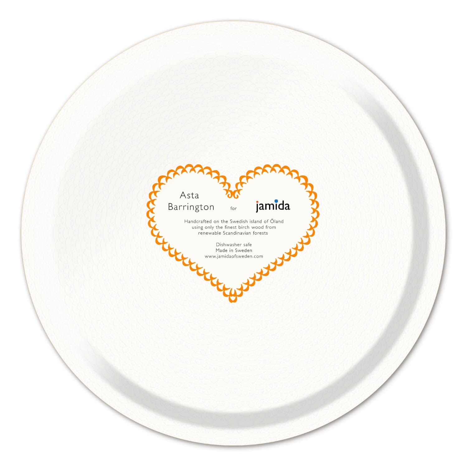 Brettet er håndlaget på den svenske øya Öland av FSC-sertifisert bjørkefinér, noe som sikrer bærekraftig produksjon og lang holdbarhet. Den laminerte overflaten gjør at brettet tåler oppvaskmaskin – ideelt både til hverdags og fest.