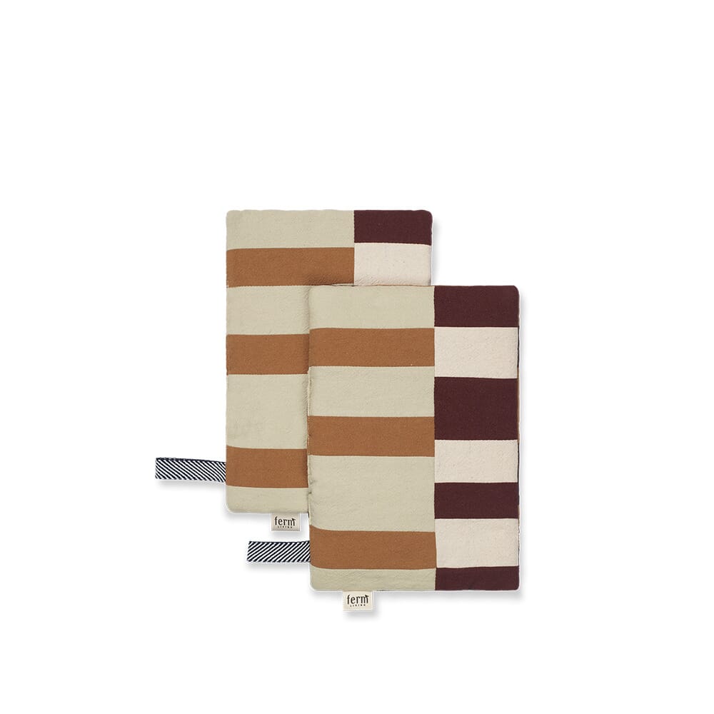 Section grytekluter setter en moderne vri på tradisjonell lappeteknikk. Dette settet med to grytekluter er dyktig sammensatt med fargede paneler i et uregelmessig, brutt stripemønster. Laget av økologisk bomull, gir den en myk og behagelig følelse som er både innbydende og diskret. Det brede formatet øker funksjonaliteten, noe som gjør gryteklutene både praktiske og stilfulle i kjøkkenet ditt.