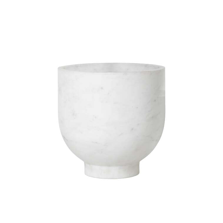 Elegant champagnekjøler laget av indisk Banswara-marmor. Enkel og moderne, men med et eksklusivt preg. De sterke konturene og det flotte materialet gjør at du vil ha den stående ute selv når du ikke bruker den. Den vil bli hjemme-barens midtpunkt samtidig som den holder drikken din kald.