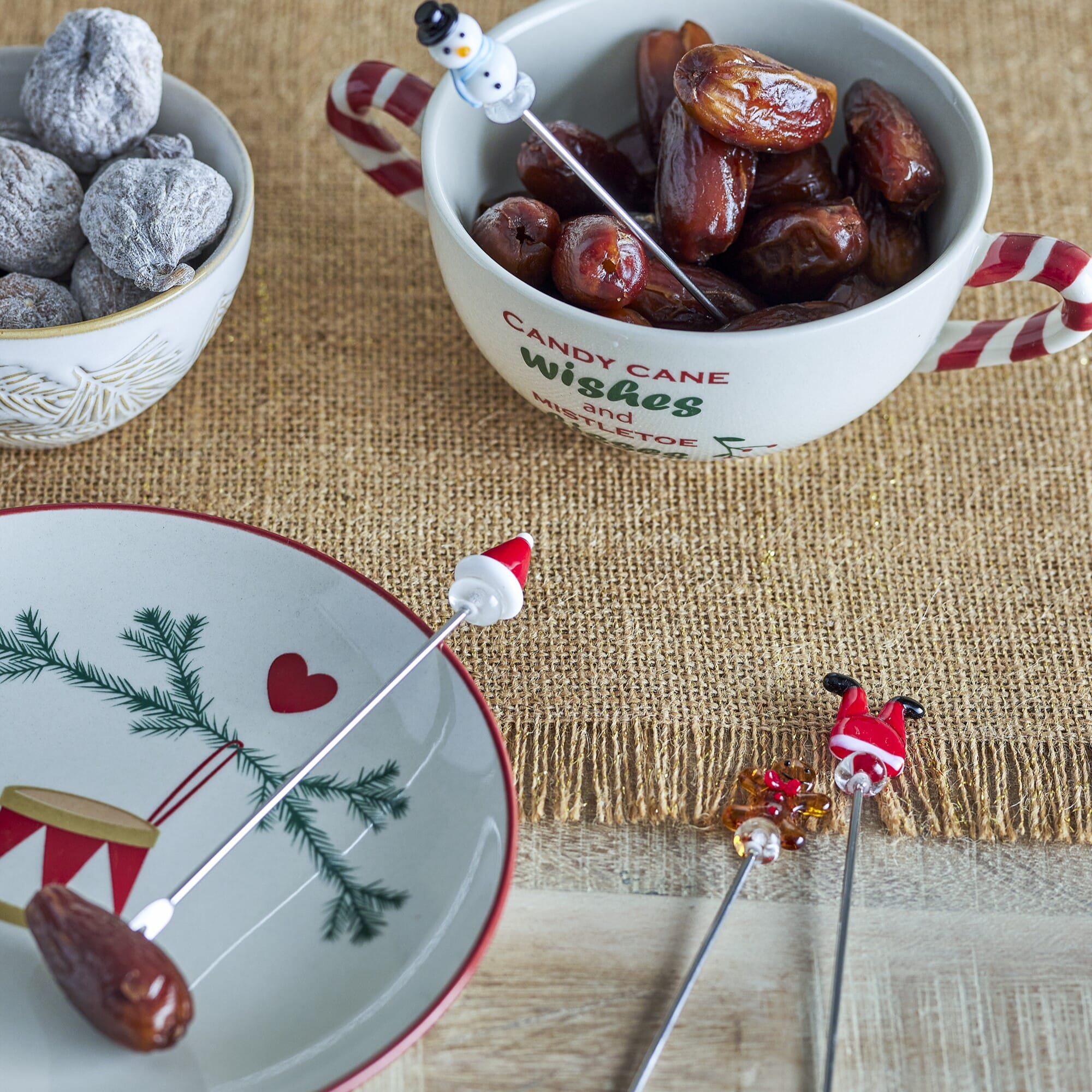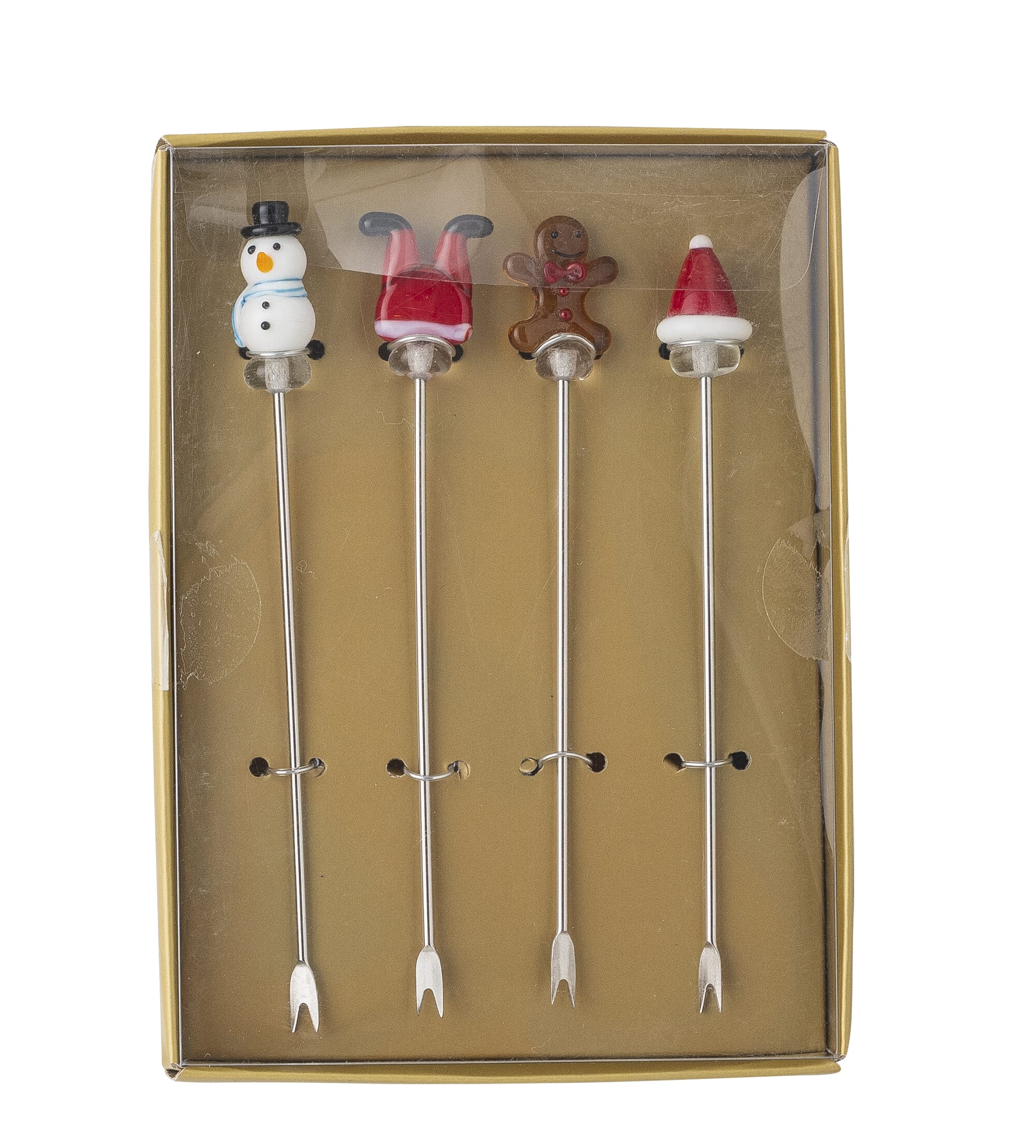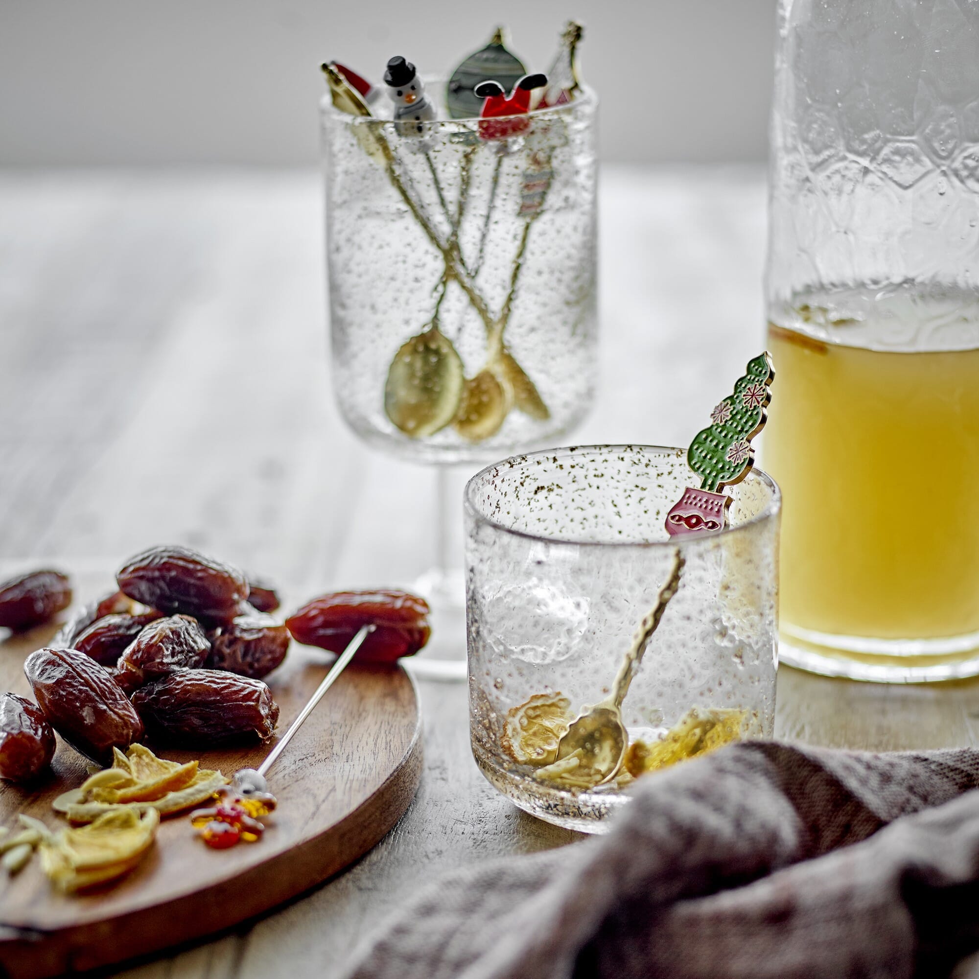 Cocktailgafflene fra Bloomingville er ikke bare en praktisk tillegg til festlige sammenkomster, men også et sjarmerende innslag på borddekkingen. Hver gaffel er dekorert med en liten glassjulefigur som fanger sesongens essens på en finurlig måte. Det munnblåste glasset gir et unikt preg, da hvert stykke er håndlaget, noe som gir små variasjoner i størrelse og form.