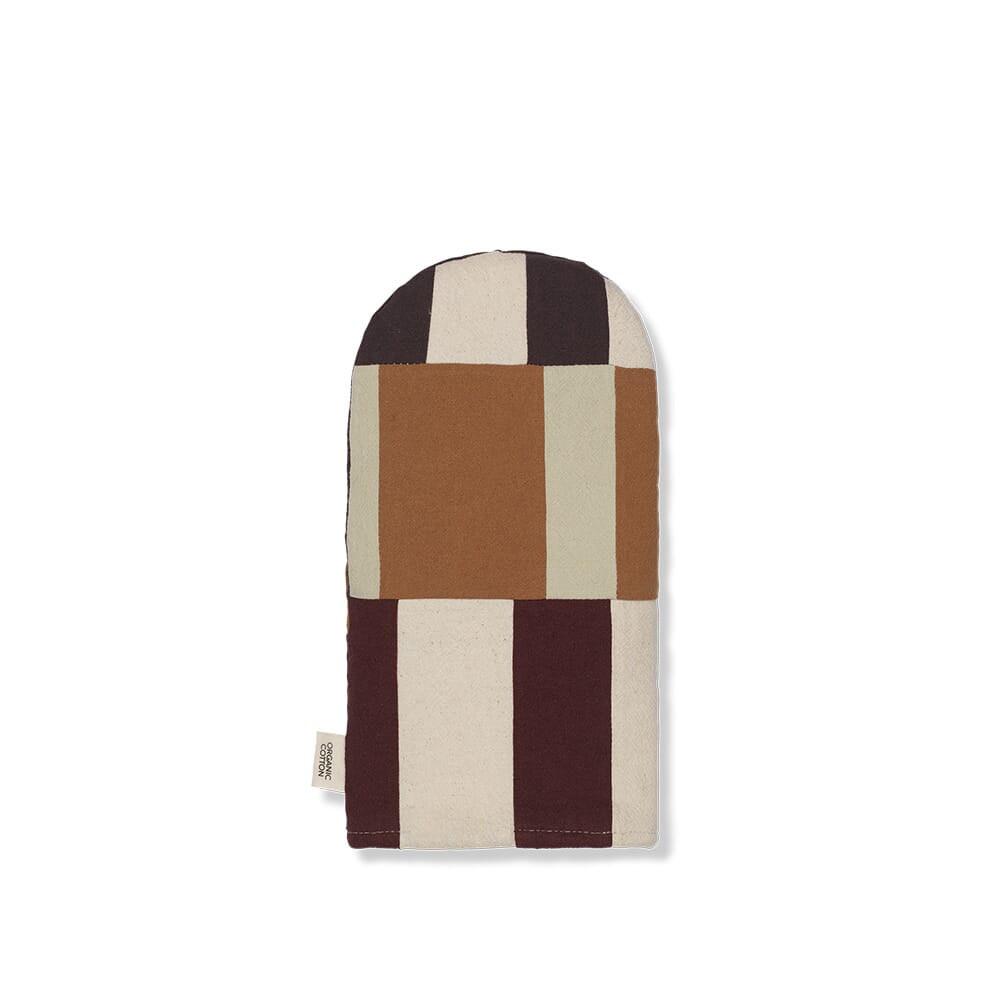 Section grytevott gir en moderne vri på tradisjonelle lappeteknikkmønstre. Denne grytevotten har nøye arrangerte fargede paneler i et uregelmessig, brutt stripemønster. Laget av økologisk bomull, gir den en myk og behagelig følelse. Section grytevott kombinerer funksjonalitet med moderne stil, og gir både beskyttelse og komfort når du håndterer varme retter.