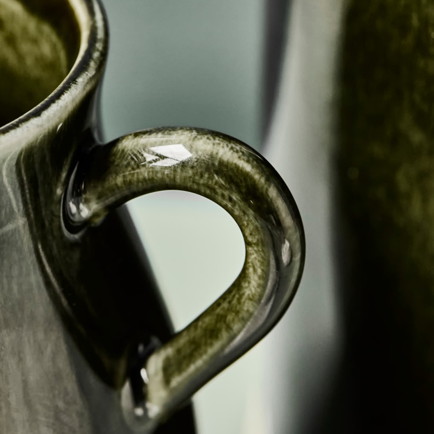 Gi borddekkingen et elegant preg med Kanne Hala Grønn – en liten, vakkert glasert mugge i grønt steintøy.