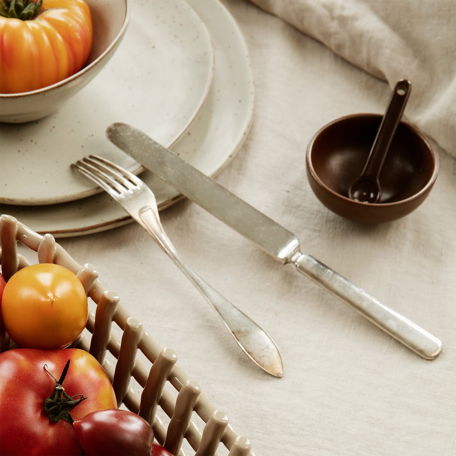 Løft spisebordets uttrykk med Petite Salt Set i den varme fargen Chocolate fra Ferm Living. Dette elegante settet kombinerer minimalistisk estetikk med håndverksmessig kvalitet, og gir et sofistikert preg til enhver borddekking. Designet er inspirert av klassiske keramiske former, men med en moderne vri som tilfører karakter og dybde. Laget av glasert steintøy med en subtil, matt overflate, sikrer det både holdbarhet og en tidløs følelse. Perfekt til hverdagsbruk eller som en del av en raffinert middagsservering.