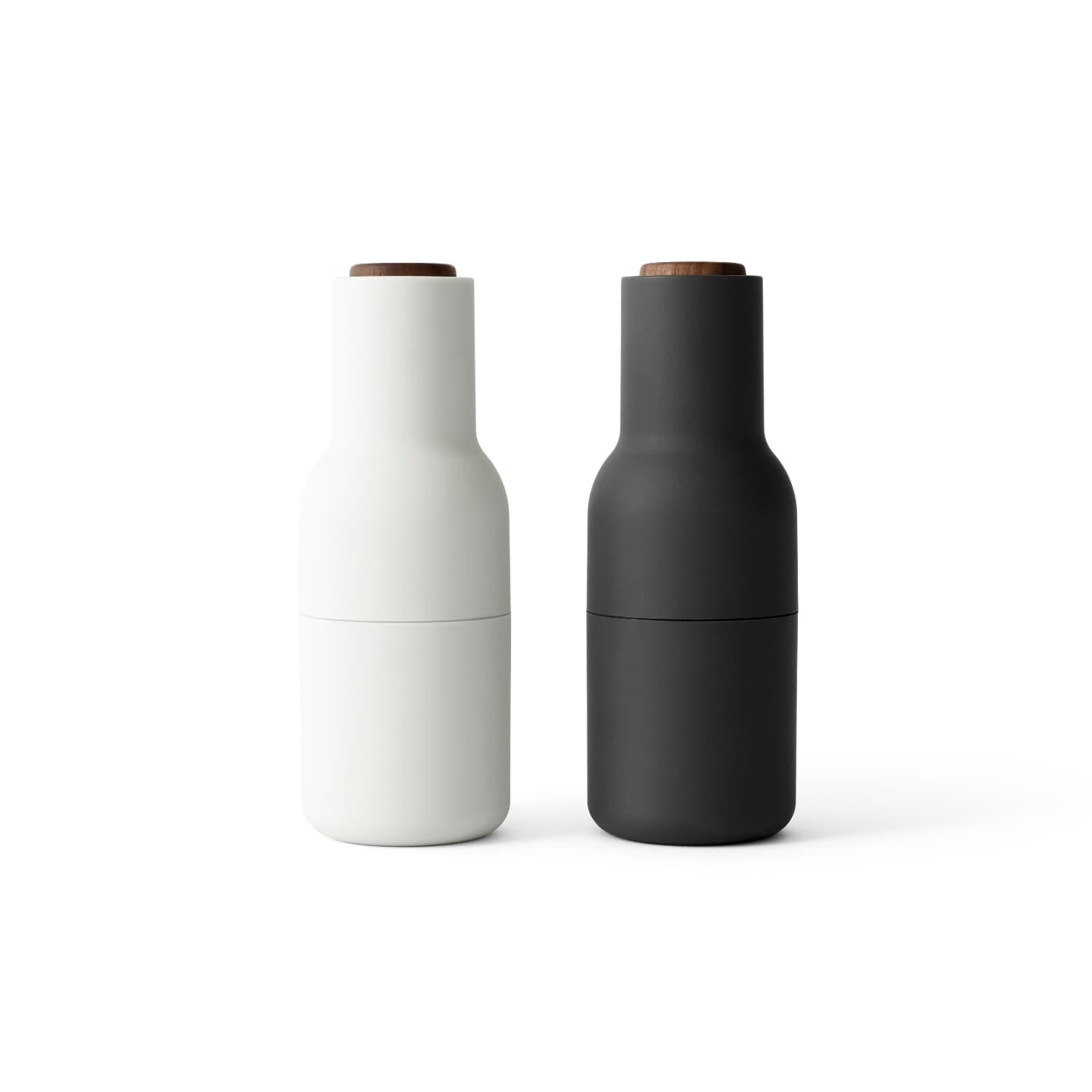 Salt- og pepperbøsse Bottle Grinder Grey med valnøtt – sett á 2 stk fra Audo Copenhagen er et stilrent og funksjonelt tilskudd til kjøkkenet.