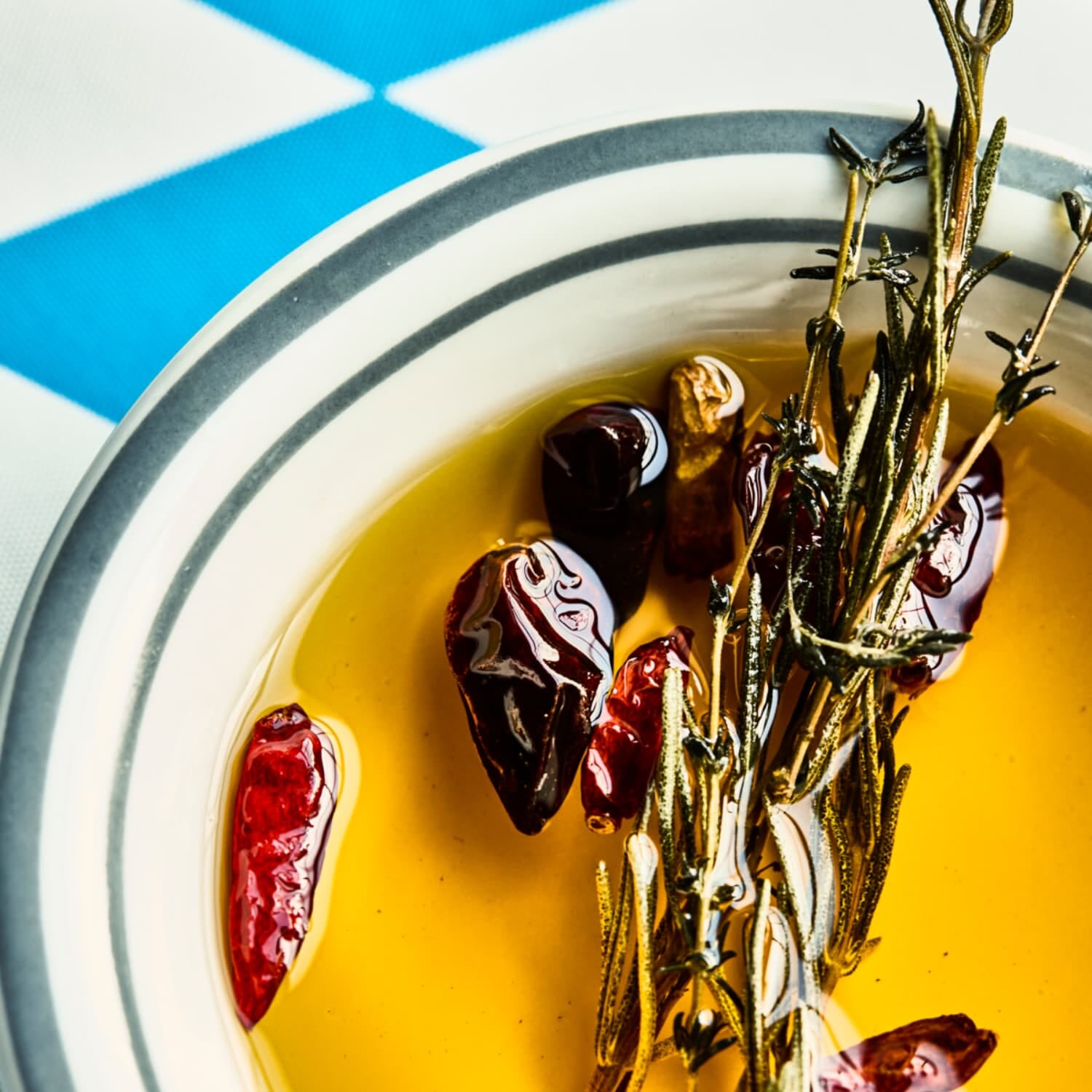 • Krydret olje (solsikke- og olivenolje med rosmarin, chili og timian)