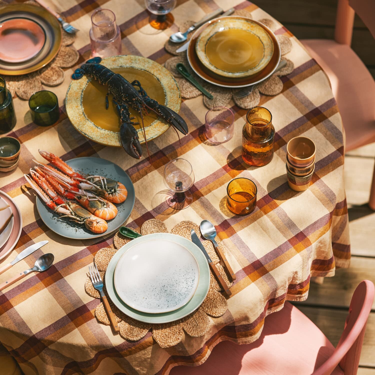 Hver bolle er glasert for hånd og bærer tydelige referanser til 1970-tallets lekne estetikk – her i en ny, naturlig utførelse inspirert av rå kystlandskap. Med sitt distinkte uttrykk og organiske fargespill passer bollene perfekt både til servering av småretter, snacks eller som dekorative elementer i hyller og åpne kjøkkenhyller.