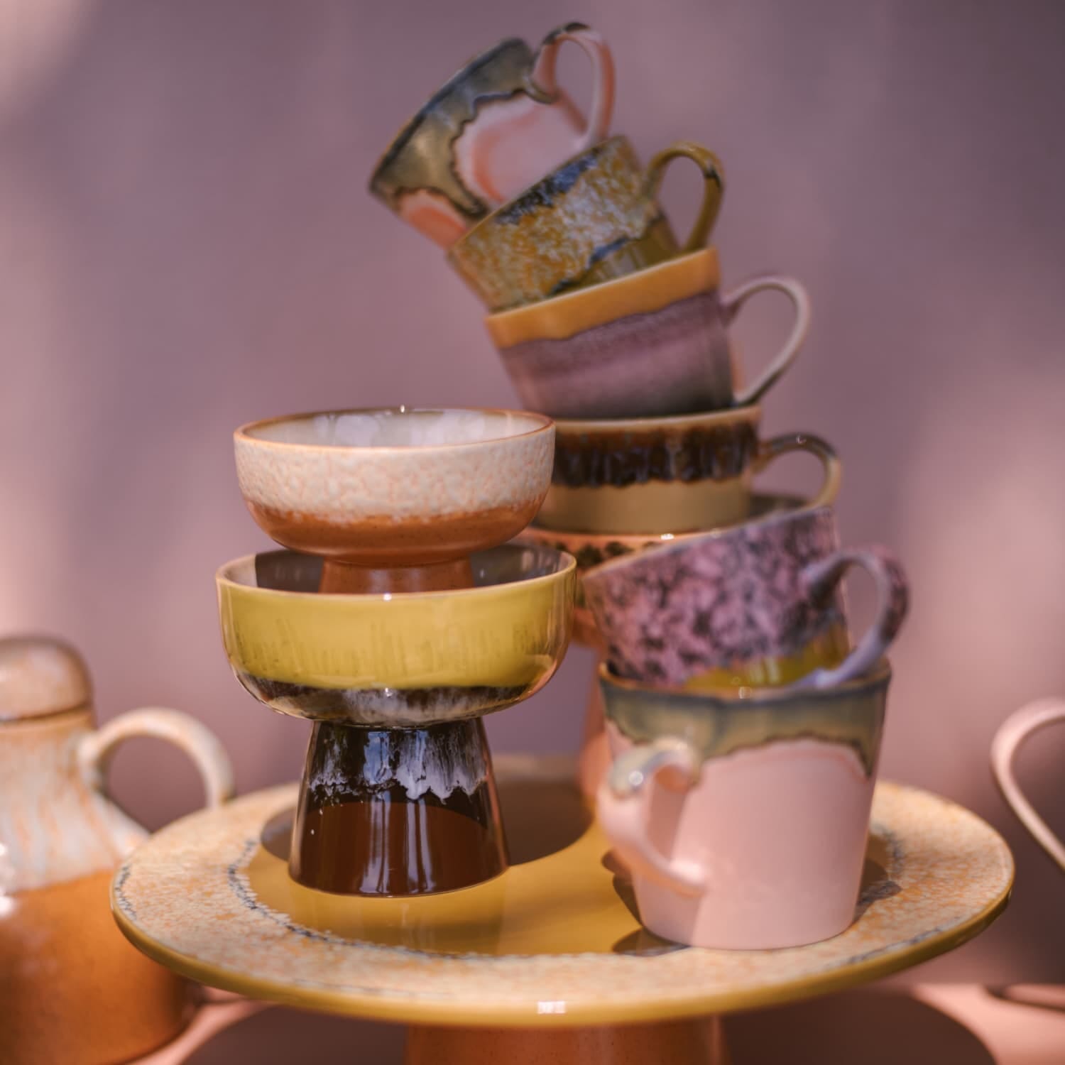 Denne håndglaserte bollen kombinerer den karakteristiske, rustikke teksturen fra 70-tallets design med et naturinspirert fargespill som gir hvert eksemplar et unikt uttrykk. Med sin forhøyede base skaper den et vakkert blikkfang på spisebordet – ideell for servering av småretter, snacks eller frukt. Laget i solid steingods som tåler både mikrobølgeovn og oppvaskmaskin, forener den stil og funksjonalitet på en uanstrengt måte. En allsidig bolle som bringer både karakter og praktisk eleganse til hjemmet.