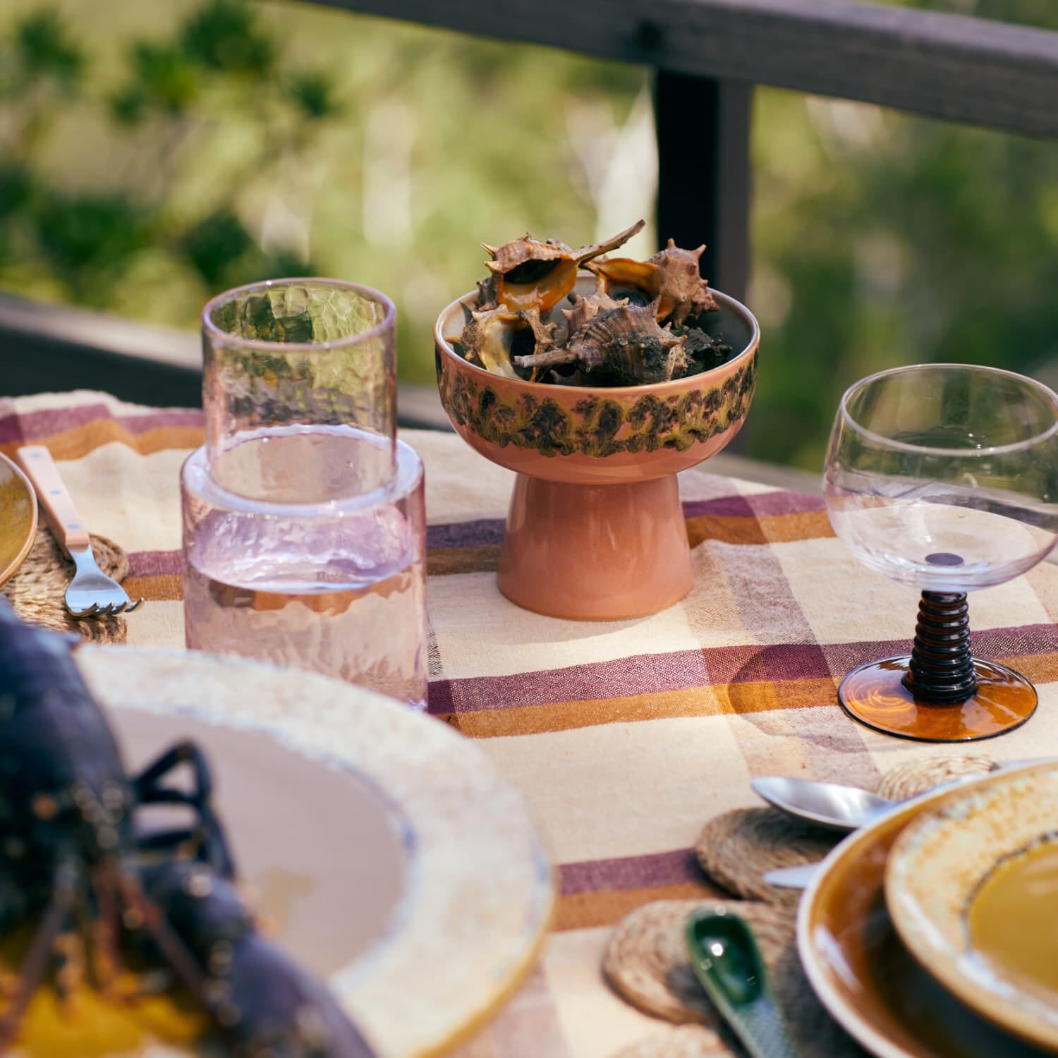 La borddekkingen skinne med den store tapasbollen Lush fra den ikoniske 70s Ceramics-serien fra HK Living.