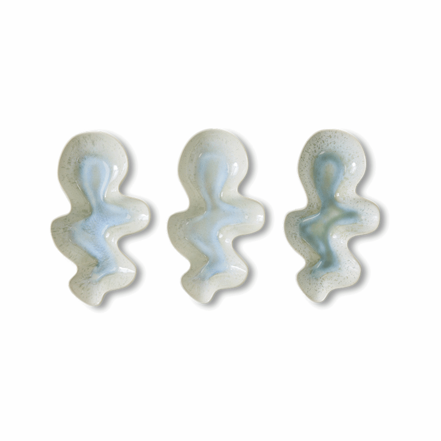 Glasuren i varme og havinspirerte toner gir hver skål sitt unike særpreg, noe som gjør den like vakker som den er funksjonell. Perfekt for servering av salater, skalldyr eller småretter – og like fin som dekorasjon når den ikke er i bruk.