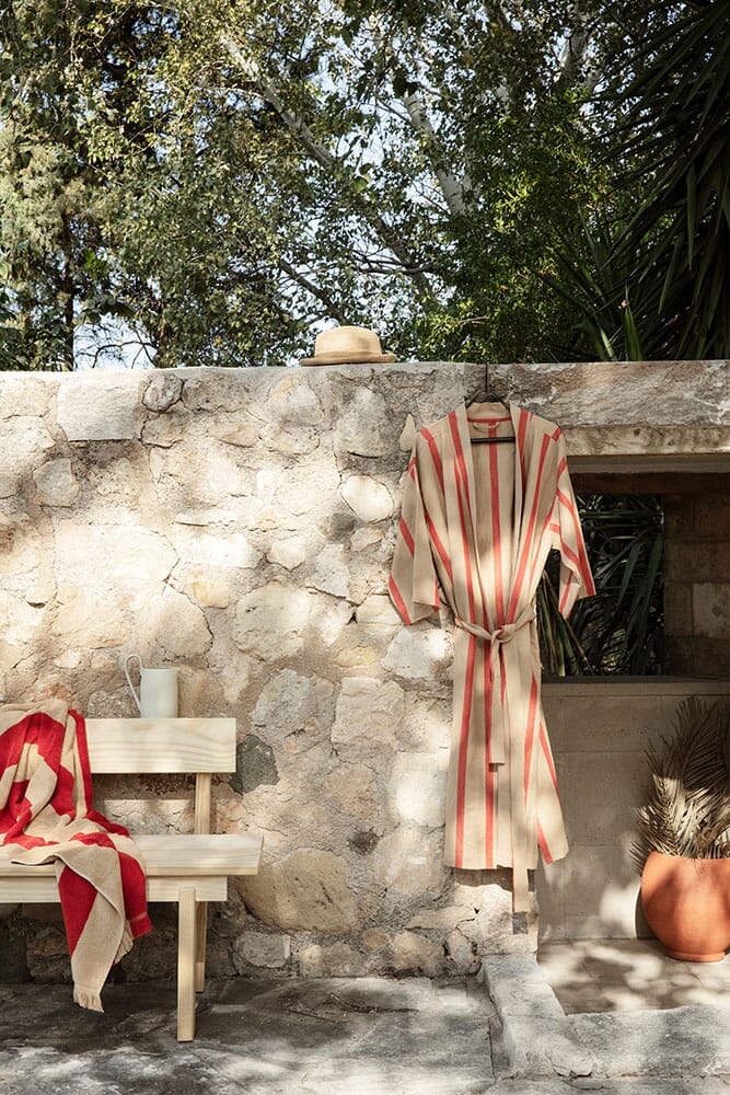 Tykt og mykt badehåndkle fra Ferm Living med frynser langs kantene. Laget av 100% økologisk bomullsfrotté som har god absorberingsevne og holder seg fint lenge. Håndklene kommer i andre farger og en mindre størrelse. Matcher perfekt til Field badekåpen og Yard piknikveske.