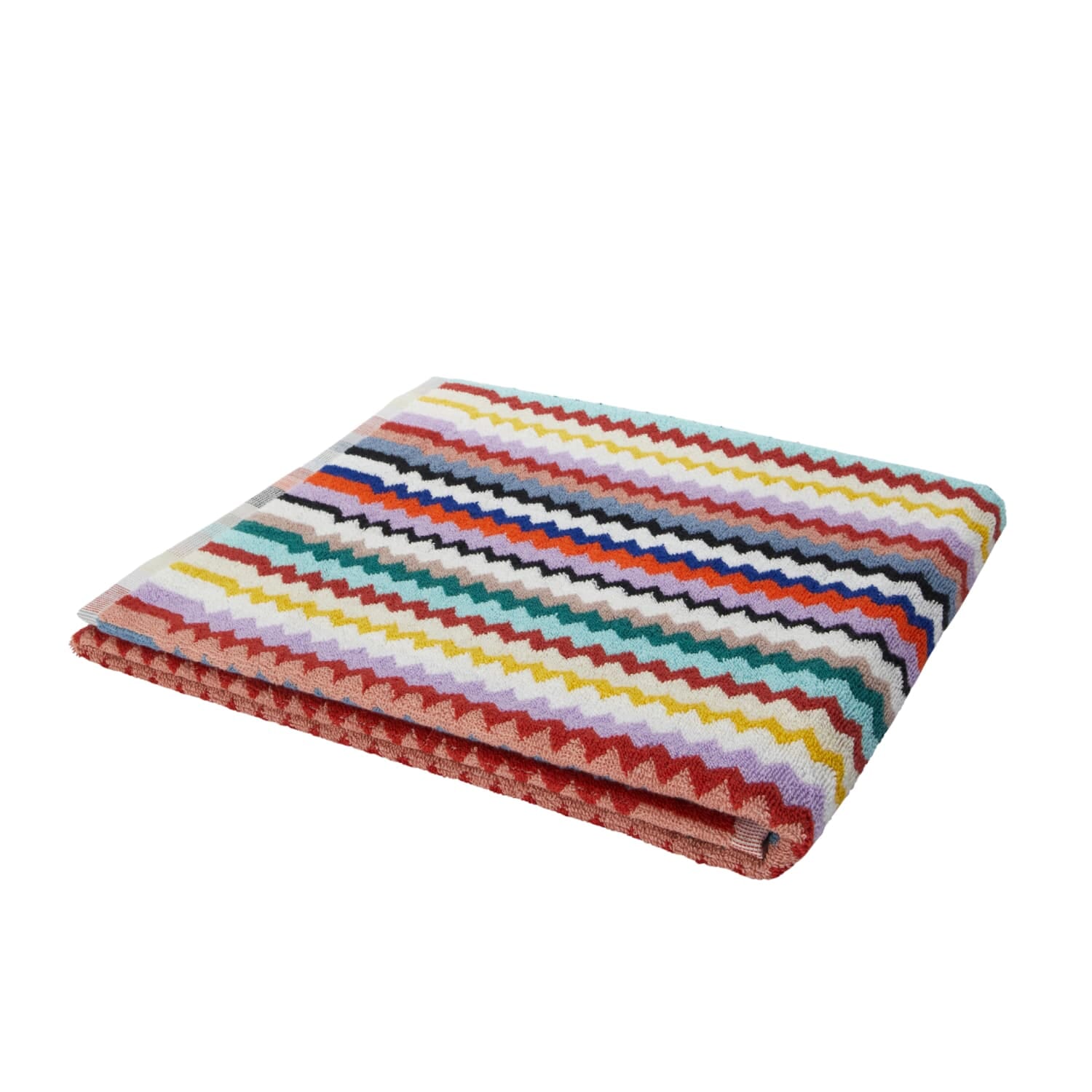 Med sitt karakteristiske sikksakk-mønster i livlige farger og grafiske linjer, tilfører dette håndkleet både energi og stil til hverdagen. Den ikoniske designen fanger oppmerksomheten og gir et umiddelbart luksuriøst uttrykk – enten det henger på badet eller blir med ut i solen.