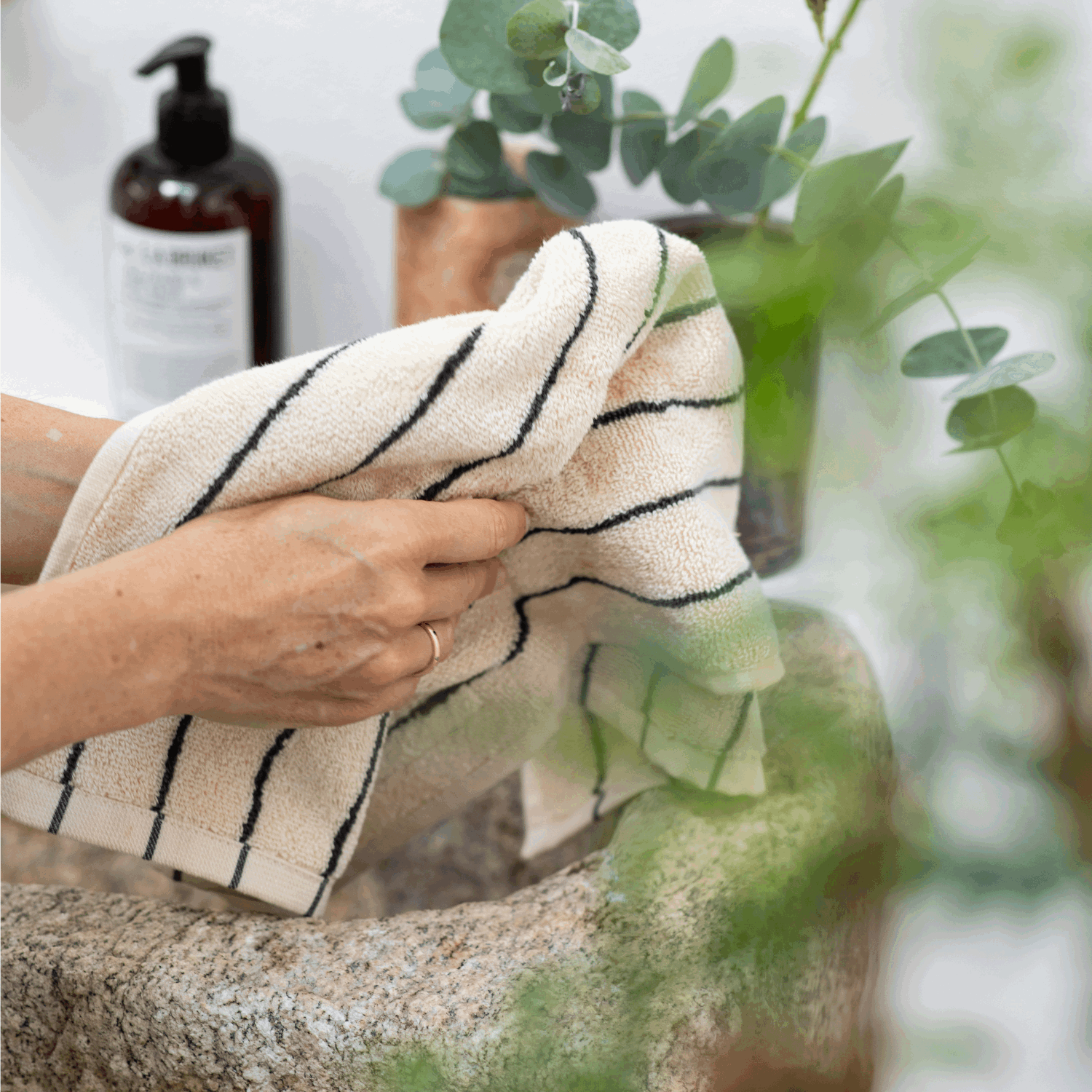 Gjestehåndkle Creme & Ink 30x50 fra Naram-serien er et lite, men luksuriøst håndkle som kombinerer bærekraft med tidløs eleganse. Laget av 100 % økologisk bomull og OEKO-TEX®-sertifisert, gir det både trygghet og komfort i hverdagen.
