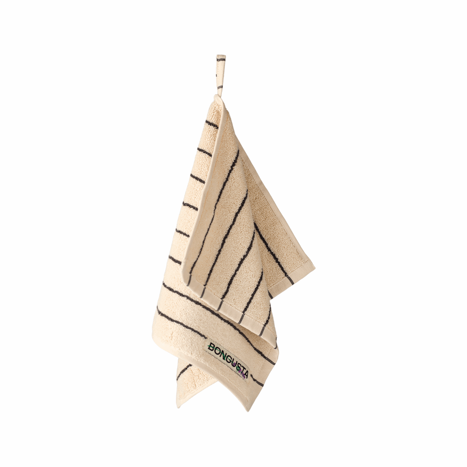 Med en vekt på 600 gsm og garn av kjemmet bomull, bevarer håndkleet sin kvalitet og mykhet vask etter vask. Fargekombinasjonen Creme & Ink gir et raffinert uttrykk med kontrastfull eleganse, mens den praktiske hempen gjør det enkelt å henge opp. Kombiner gjerne med andre produkter fra Naram-serien for et helhetlig og stilrent preg.