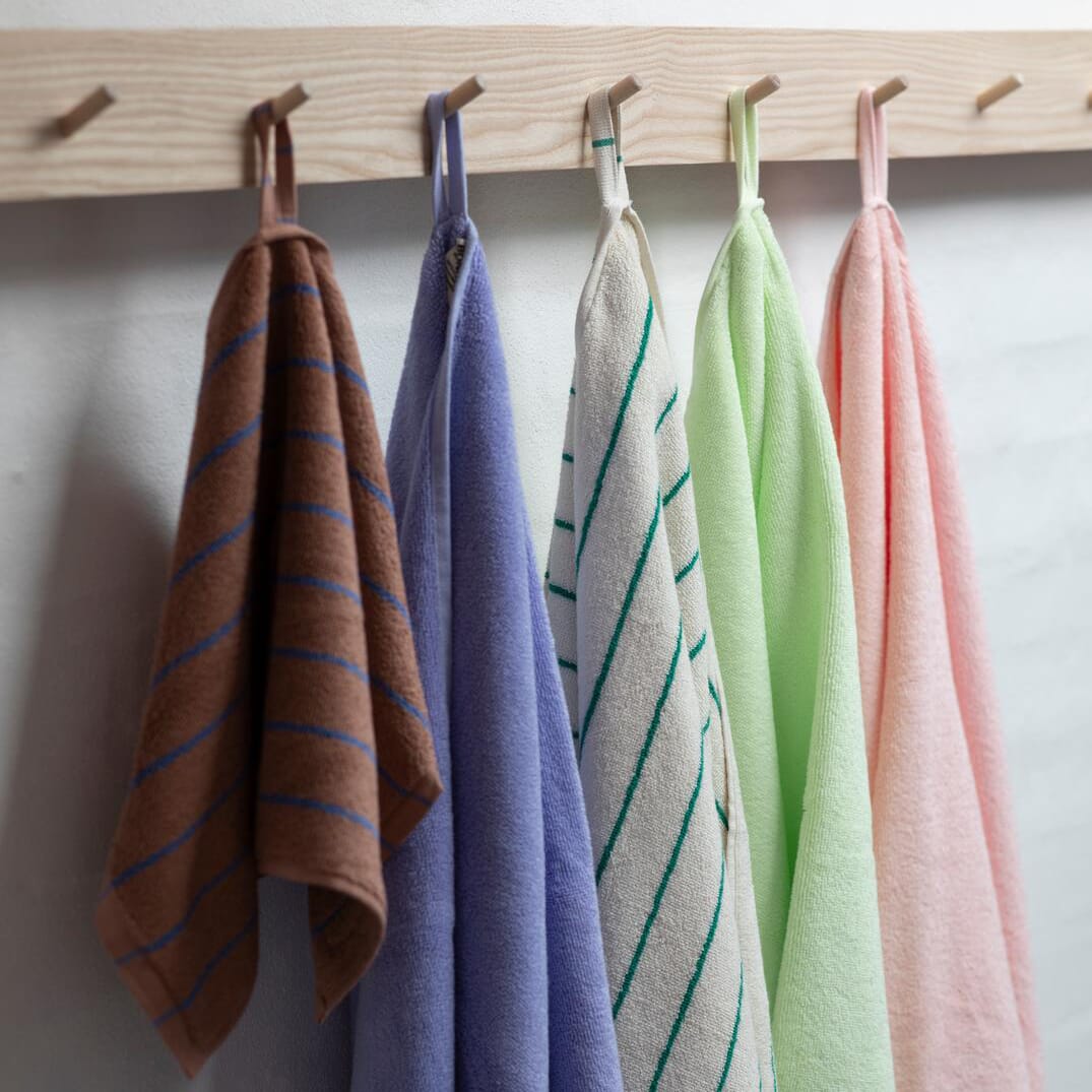Med sitt fargerike og karakteristiske stripemønster, brodert Bongusta-logo og praktisk opphengsløkke, er Naram-håndkleet like funksjonelt som det er dekorativt – enten du bruker det på badet, i gjestetoalettet eller tar det med til stranden.