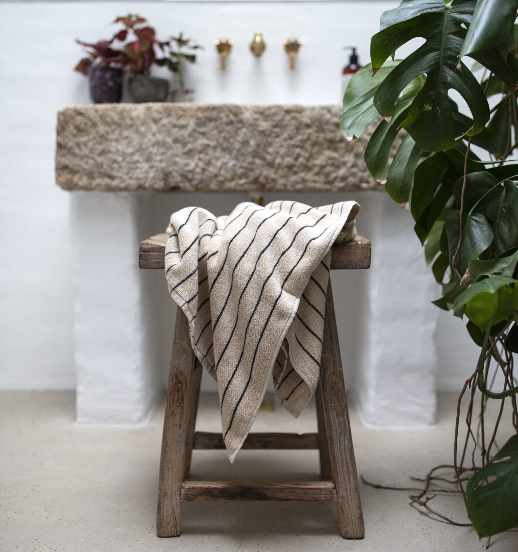 Hempene på håndklærne er laget i samme farger for et gjennomført utseende.