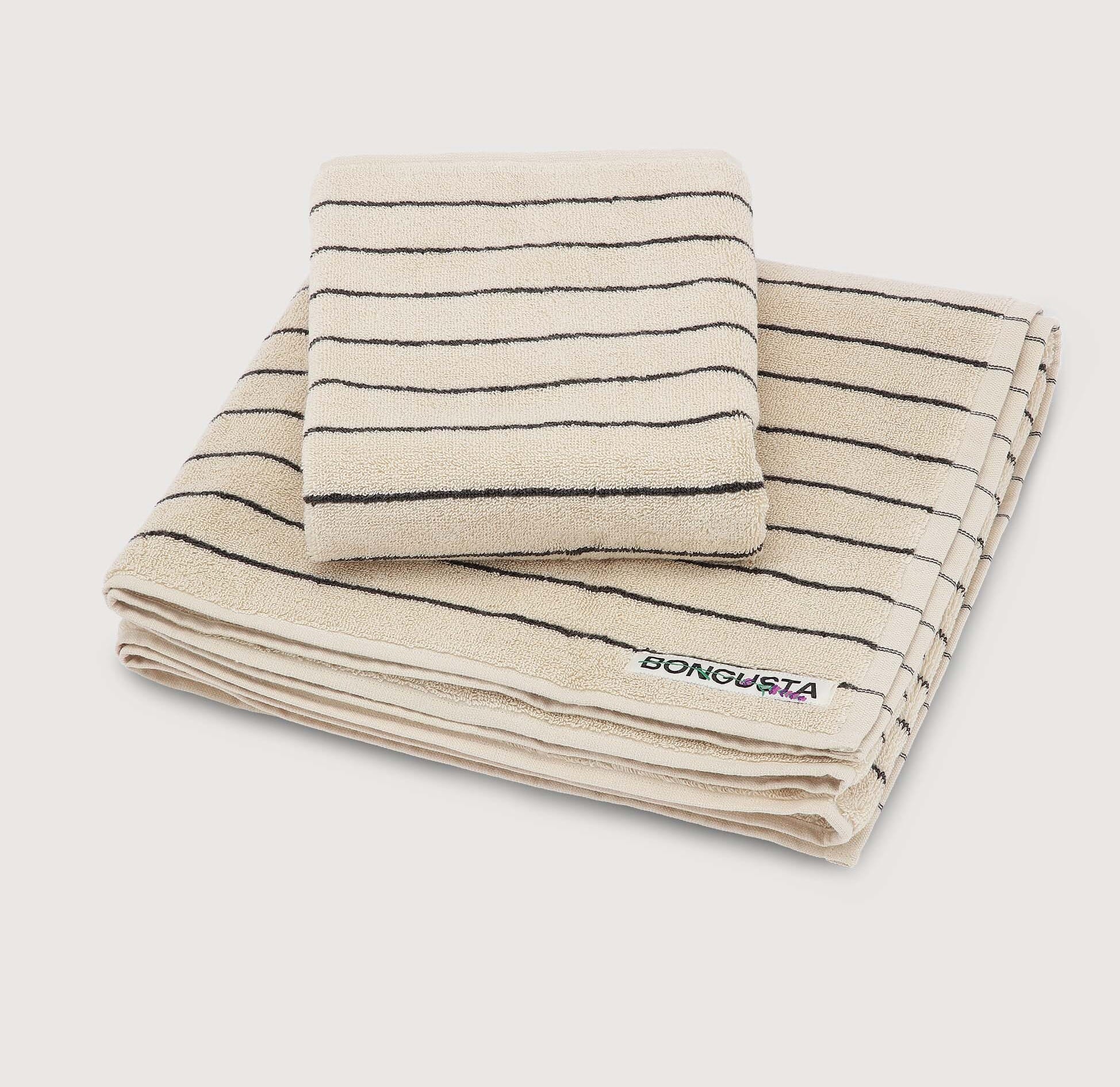 Håndklærne er tilgjengelig i flere ulike farger og størrelser. Sjekk også ut Bongustas badekåper med samme design.