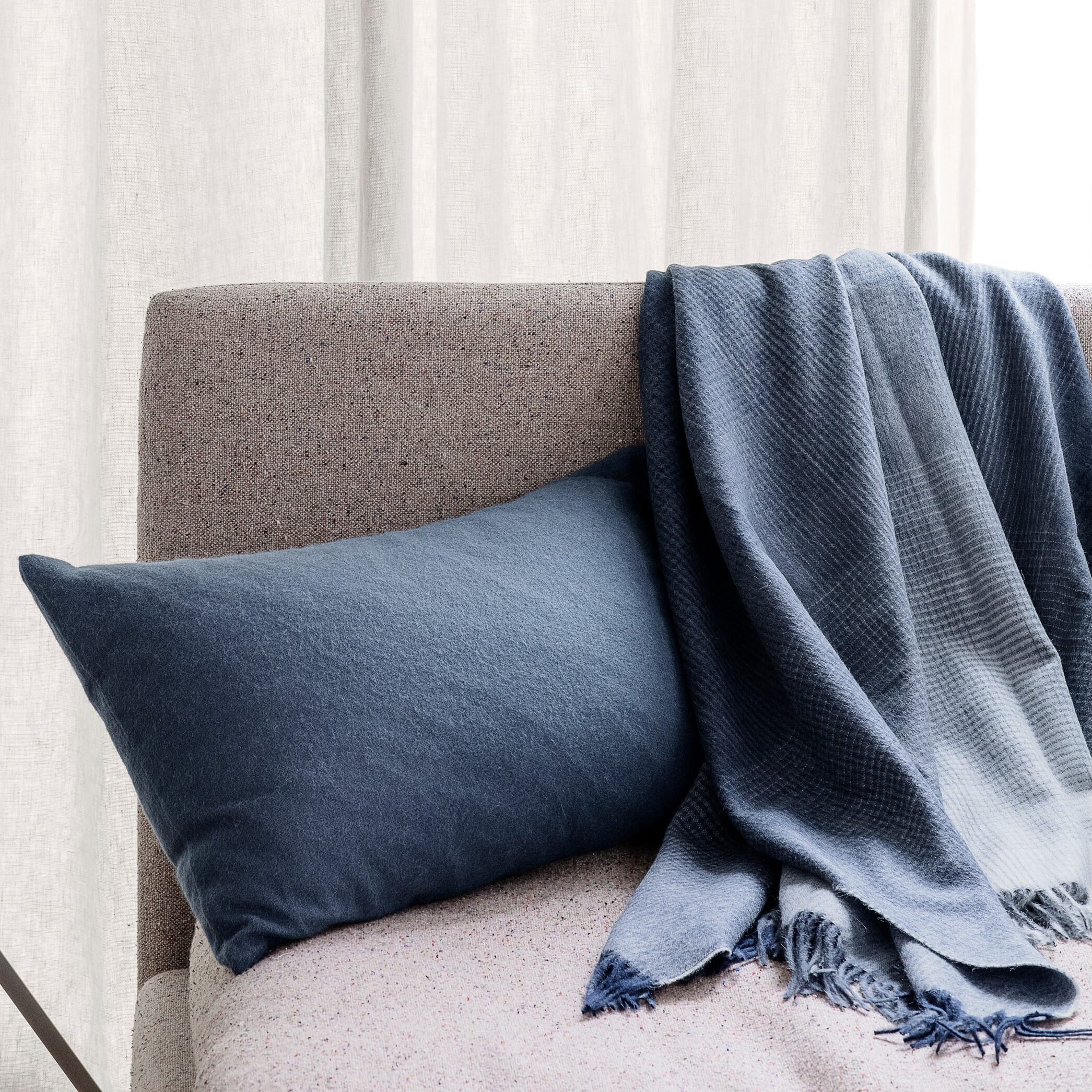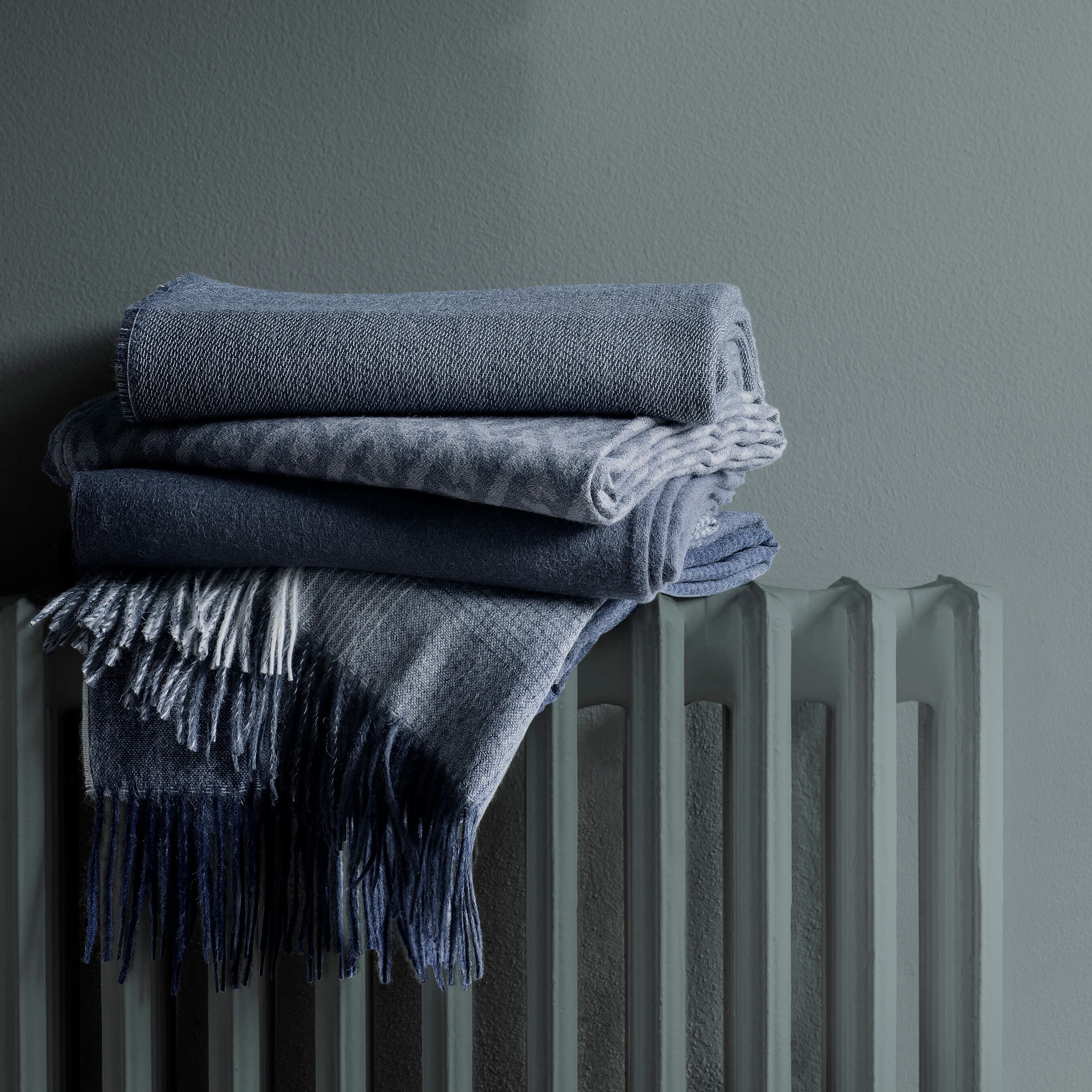 Der hav og himmel møtes. Designet på Horizon pleddet skifter elegant og vakkert fra lys til mørk på en naturlig måte. Dette er et utrolig vakkert stykke håndverk – et ekte vitnesbyrd om en peruviansk vever's talent. Horizon-kolleksjonen inkluderer også puter i en rekke utrolig vakre farger.