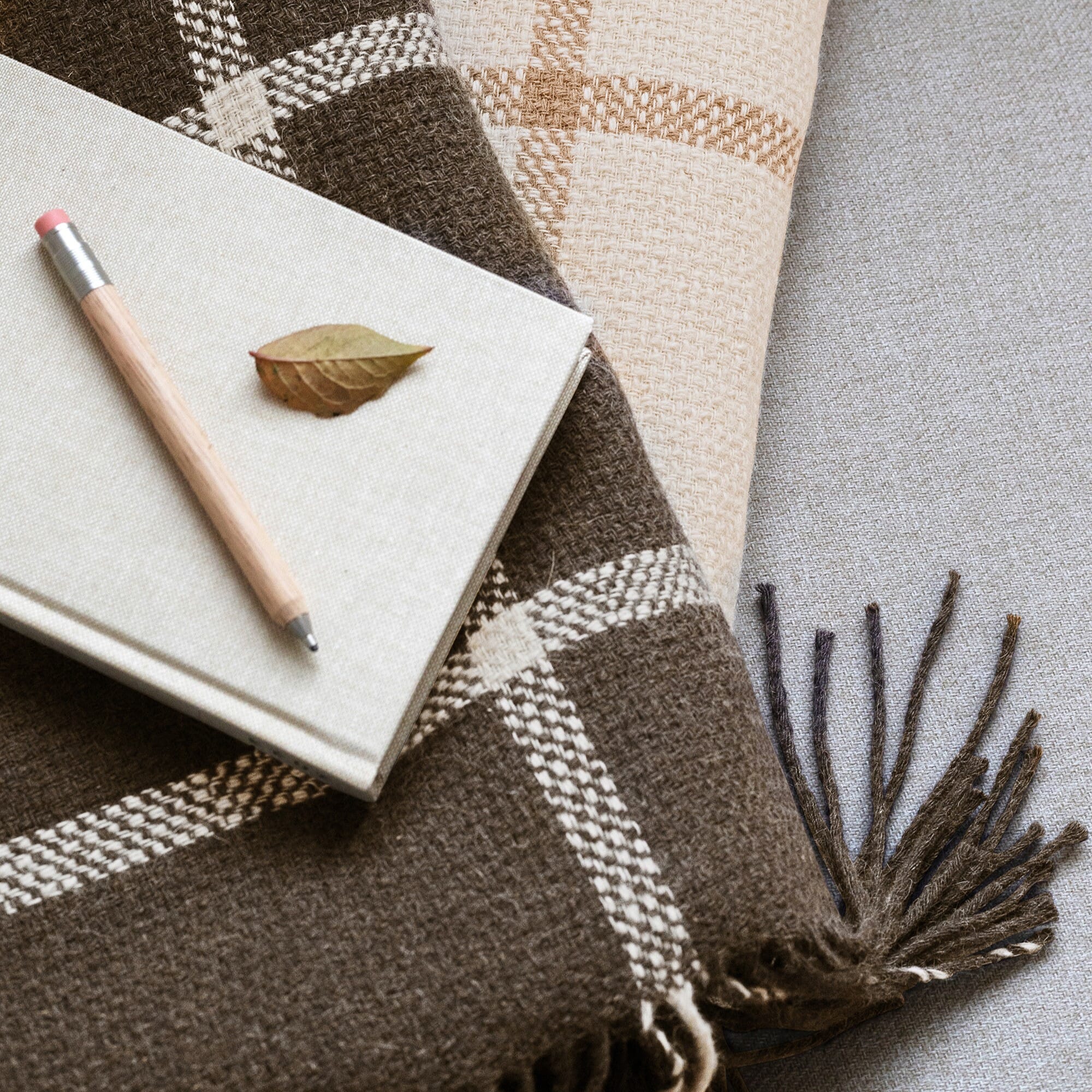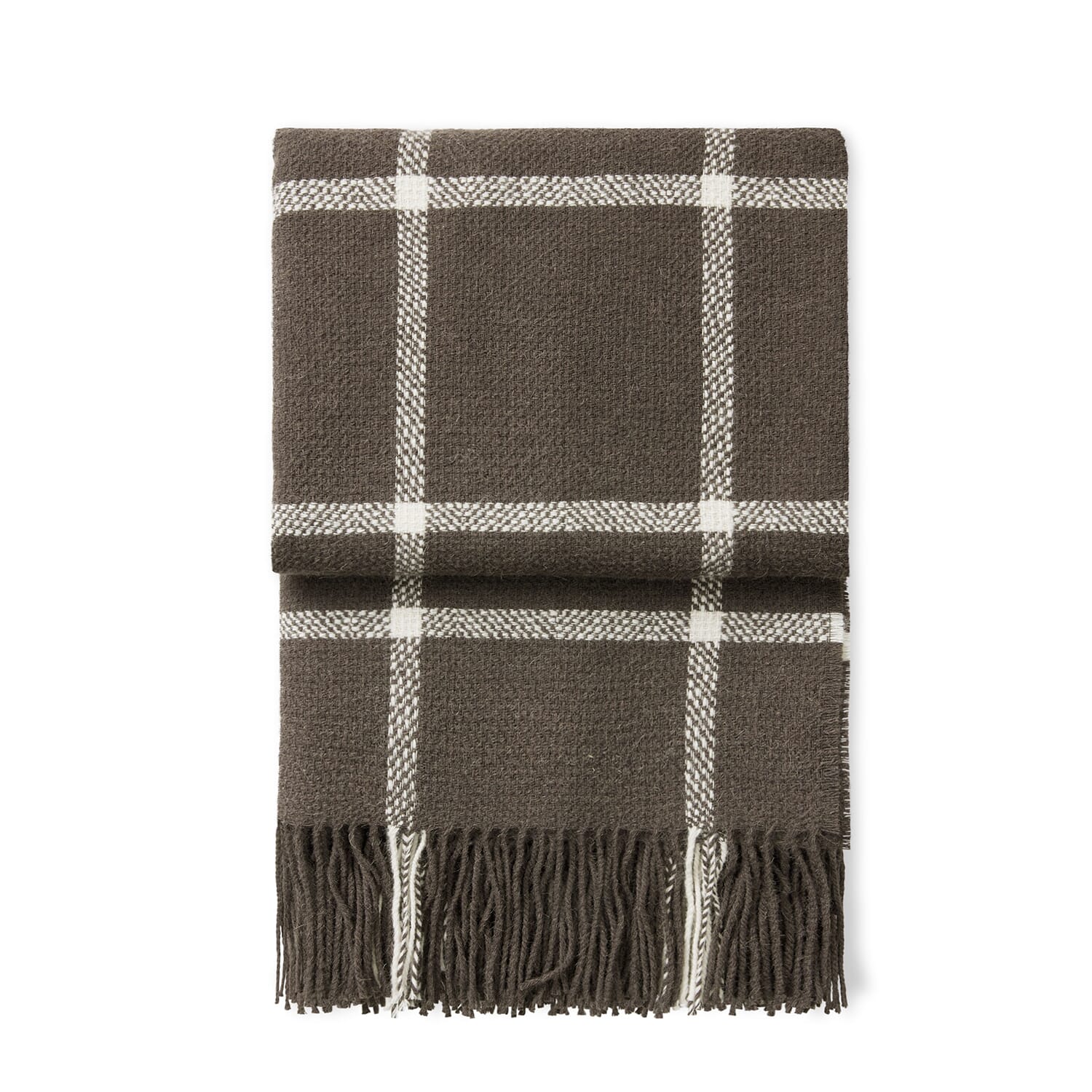 Tartan pledd fra Elvang kjennetegnes av et tykt og fyldig uttrykk. Designet er inspirert av det tradisjonelle tartanmønsteret med kryssende horisontale og vertikale bånd, avsluttet med ekstra lange frynser.