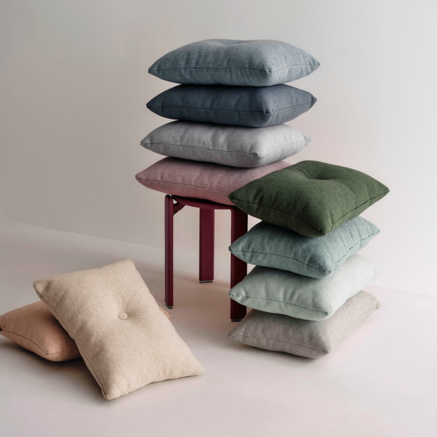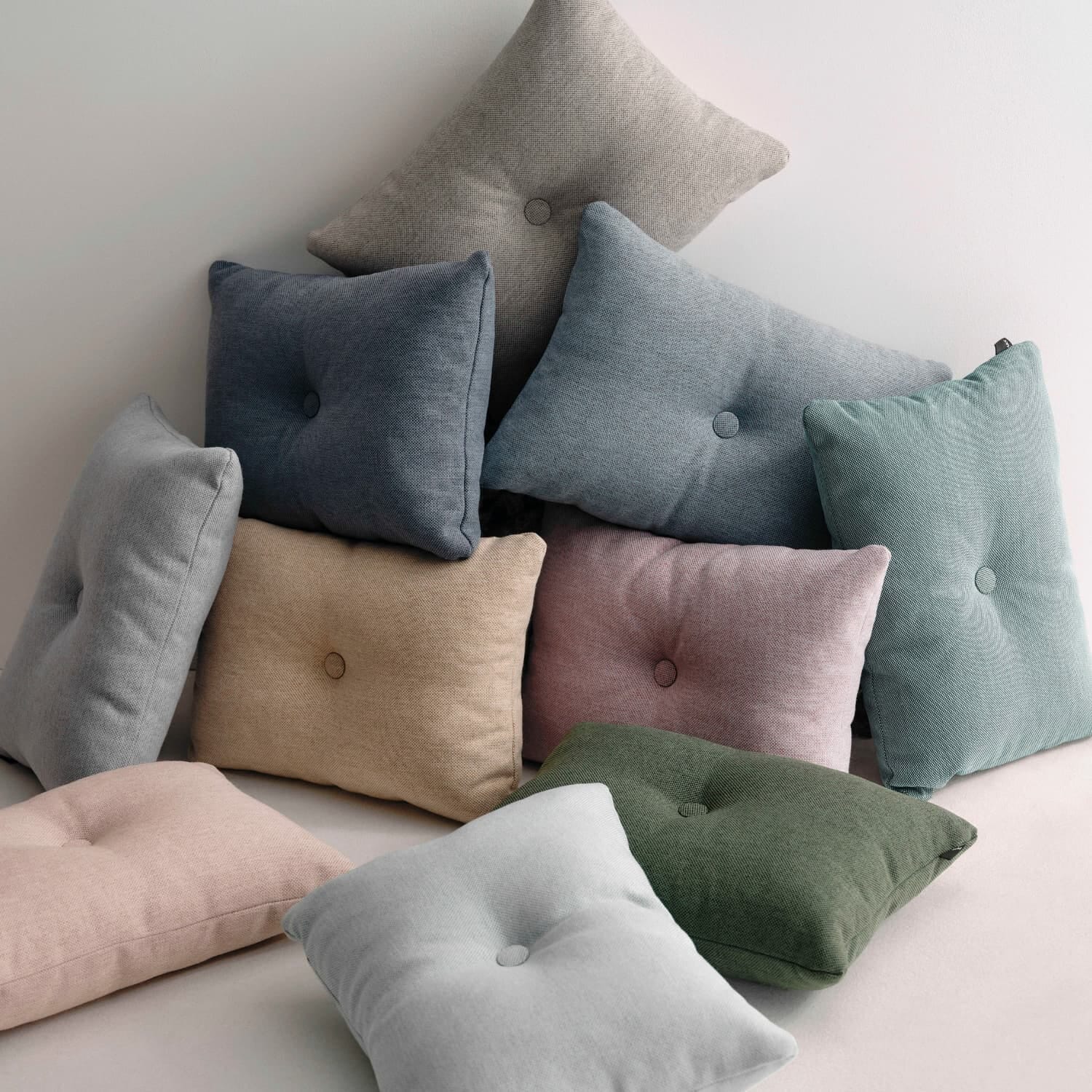 Dot Pute fra HAY er en ikonisk klassiker, kjent for sin karakteristiske knapp i midten som gir et lekent og grafisk preg. Med sitt tidløse design tilfører den både komfort, struktur og farge til sofaen, sengen eller lenestolen.