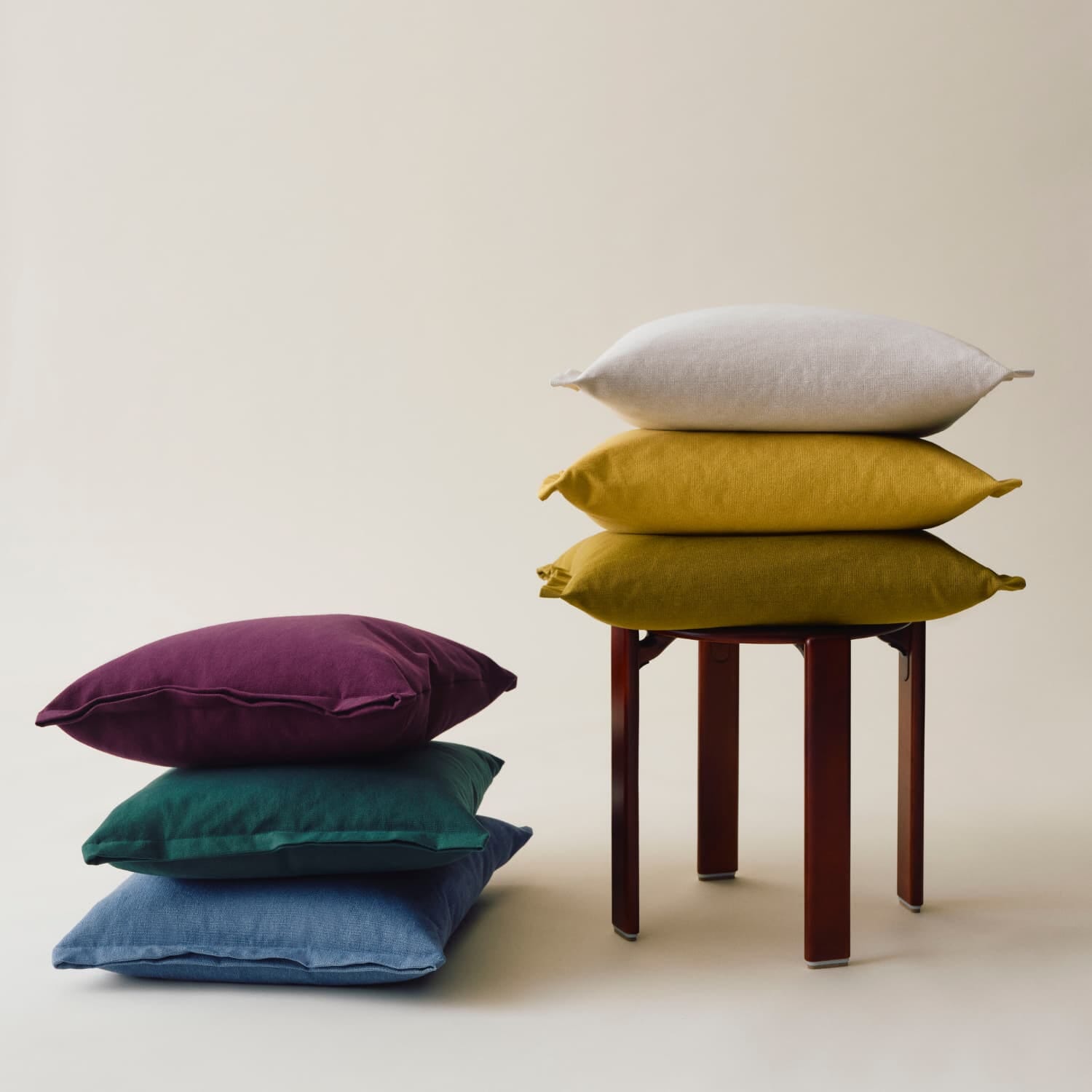 Kjennetegnet til putene i Plica-serien er de doble foldede kantene, som gir et rent og sofistikert design. De kan mikses og matches med andre puter fra HAY for et lekent uttrykk, eller brukes alene for et rolig og harmonisk preg.