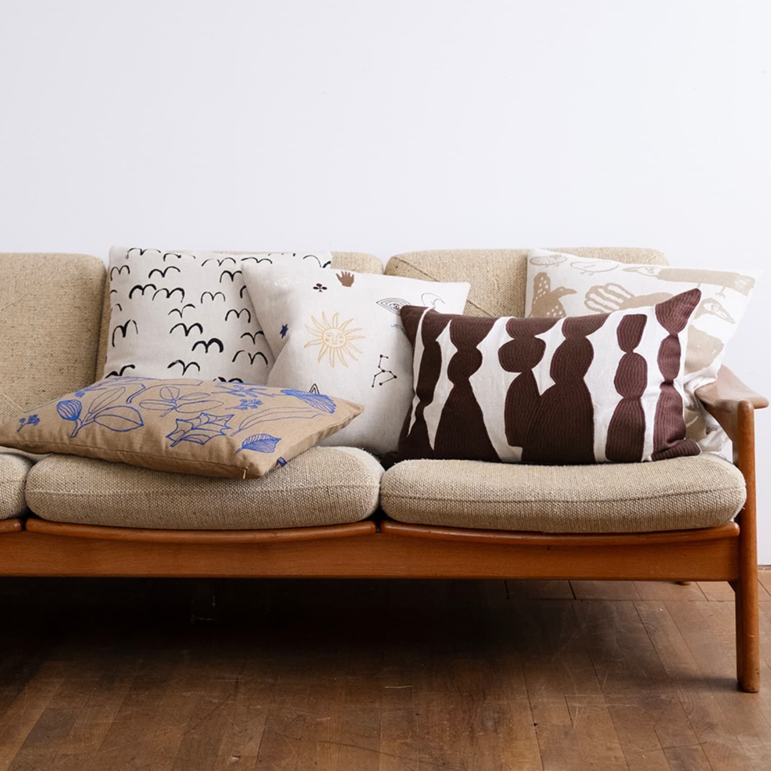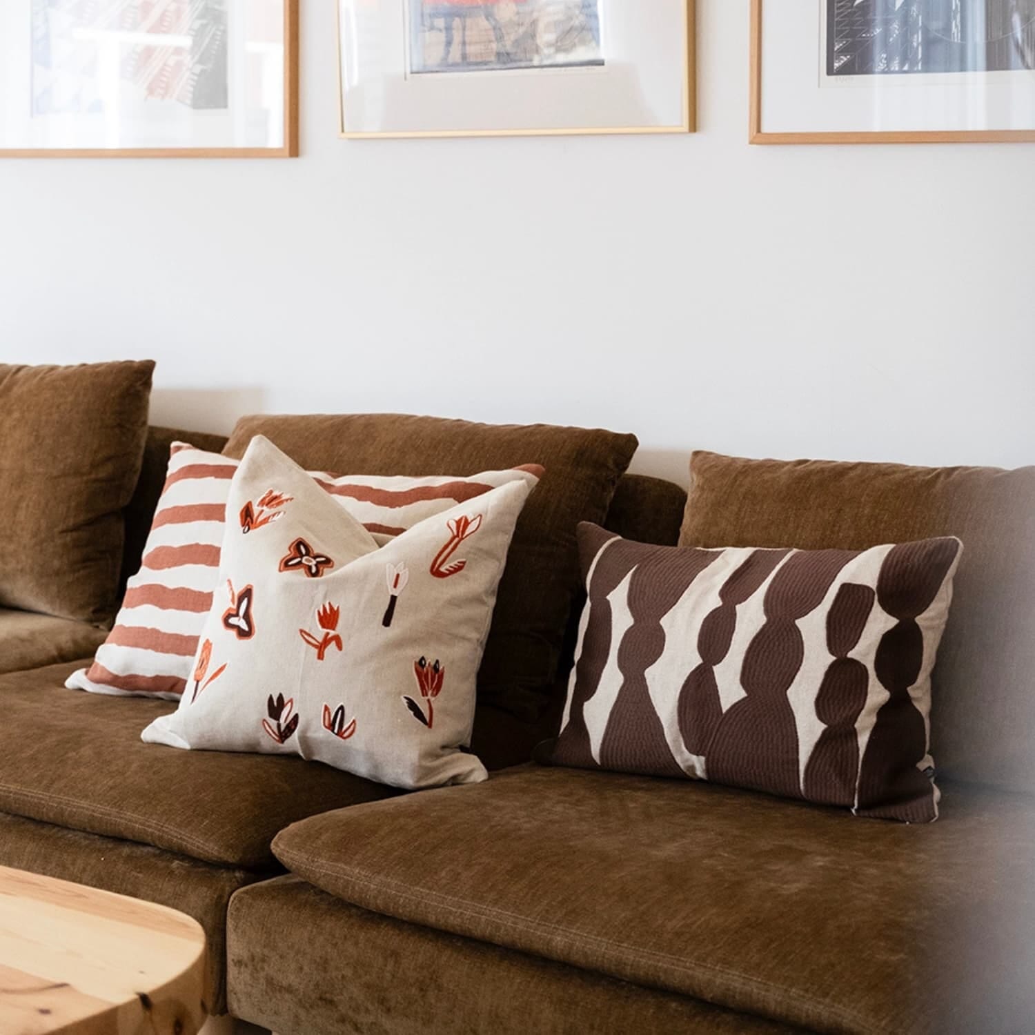 Putetrekk Bowie Mocca 58x38 er et stilrent og kunstnerisk putetrekk med et brodert motiv signert Elisabeth Dunker for Fine Little Day.