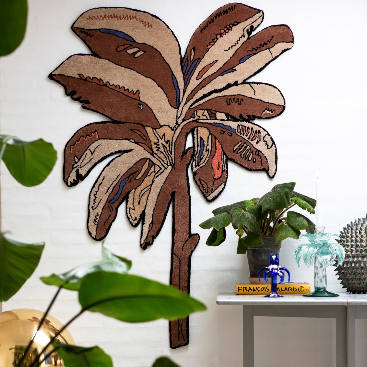 Bounty fungerer både som gulvteppe og som veggkunst, takket være den integrerte opphengsløsningen på baksiden. Enten det ligger i stuen eller pryder en tom vegg, tilfører teppet karakter, håndverksverdi og et subtilt tropisk preg til innredningen.