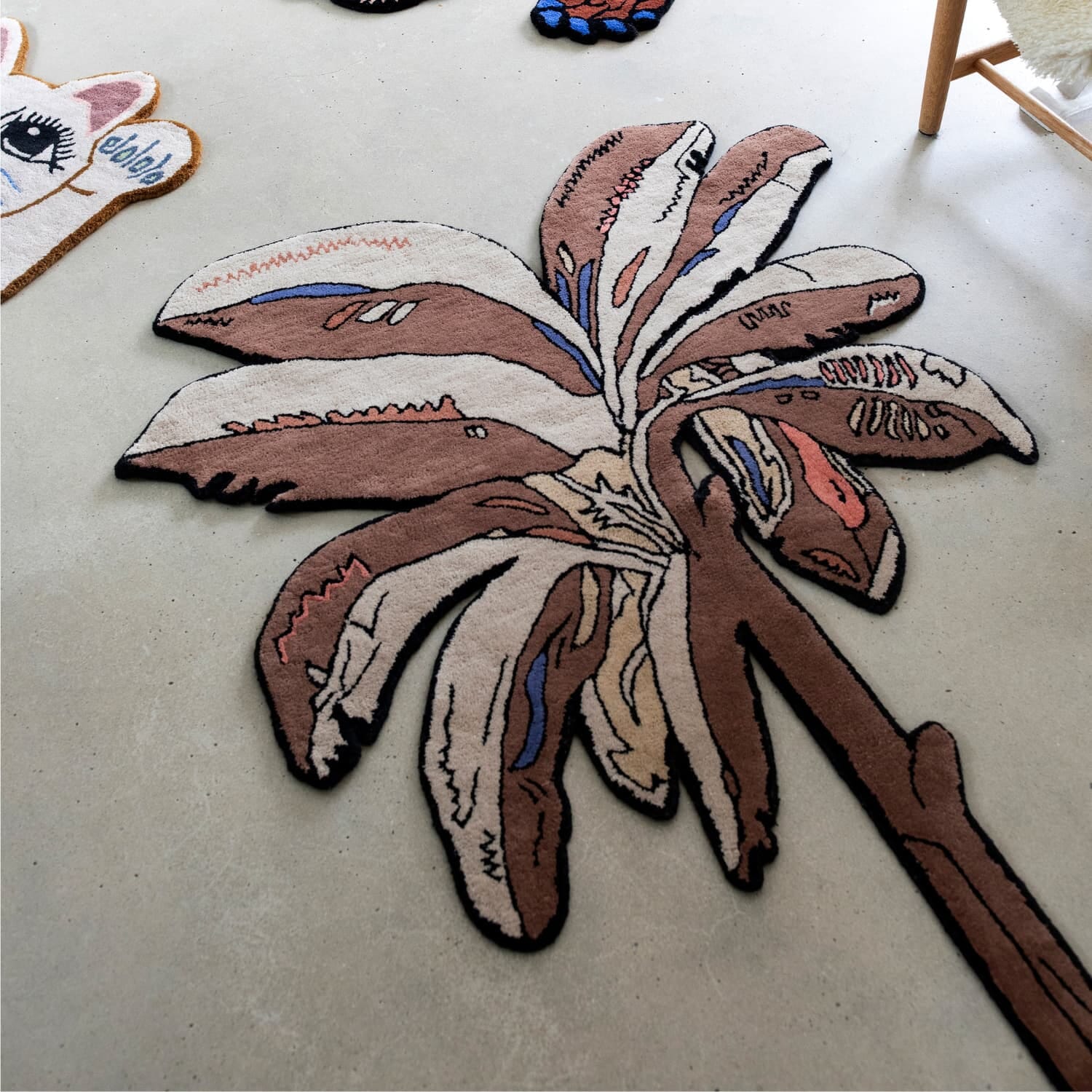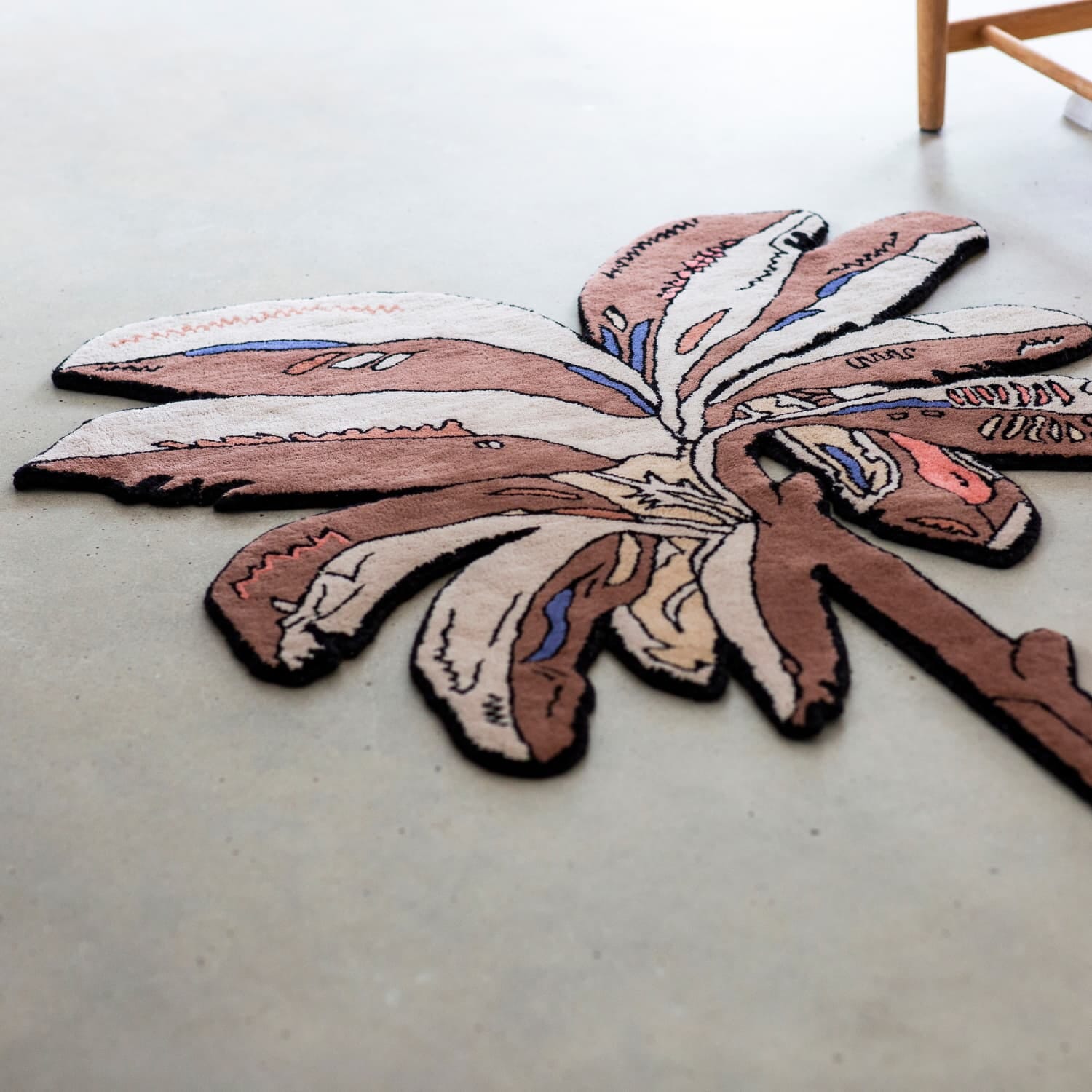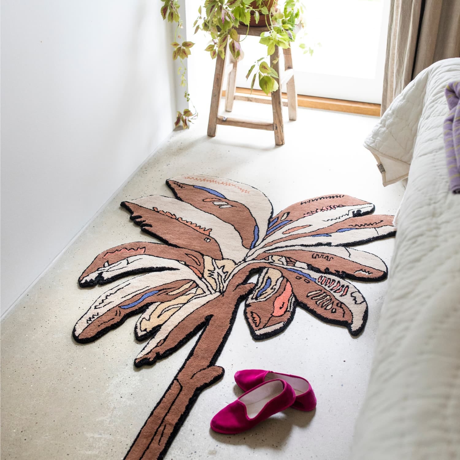 Gjør hjemmet ditt til et eksotisk fristed med Bounty gulvteppe 160x100 cm – et iøynefallende designteppe formet som en palme, hvor lekent formspråk møter elegant fargebruk.