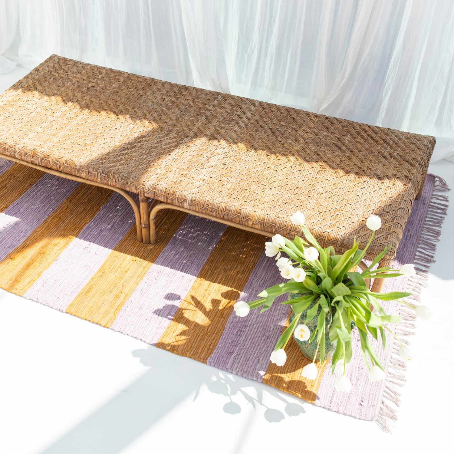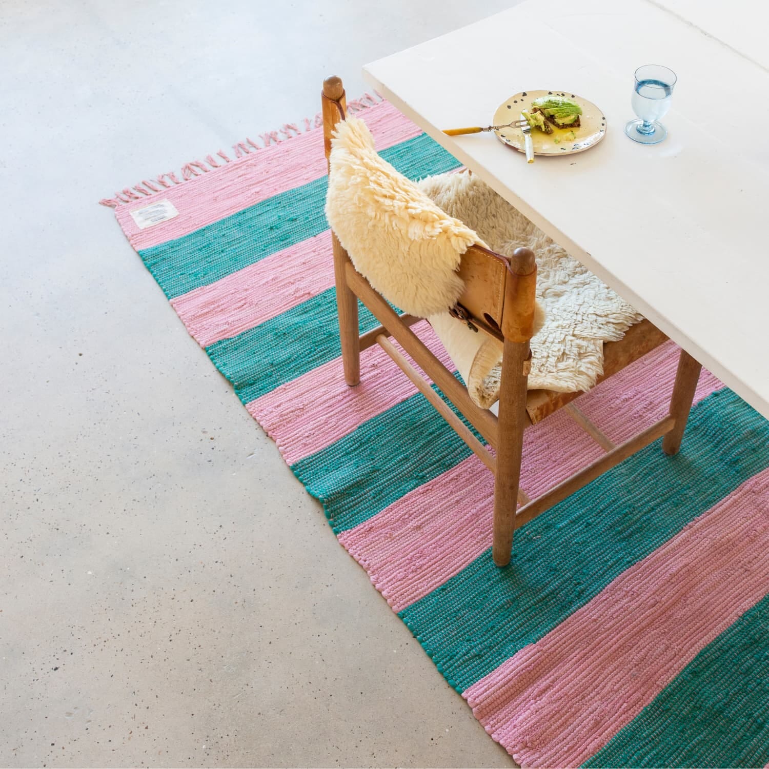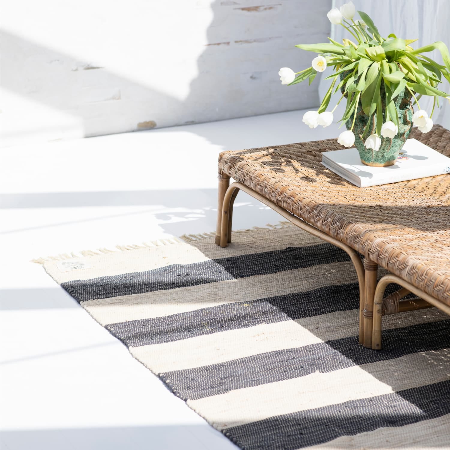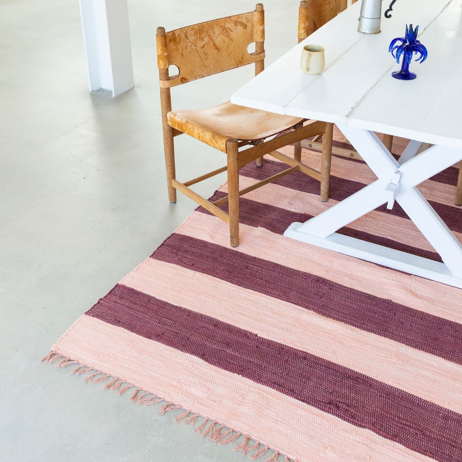 Hver tråd i teppet er en del av en tidligere historie, nå vevd inn i et nytt, vakkert design med myk struktur, klassiske striper og dekorative frynser. Den varme, håndlagde karakteren gjør det ideelt til ethvert rom – fra inngangspartier og barnerom til sommerhytter og stuer som trenger et unikt blikkfang med sjel.
