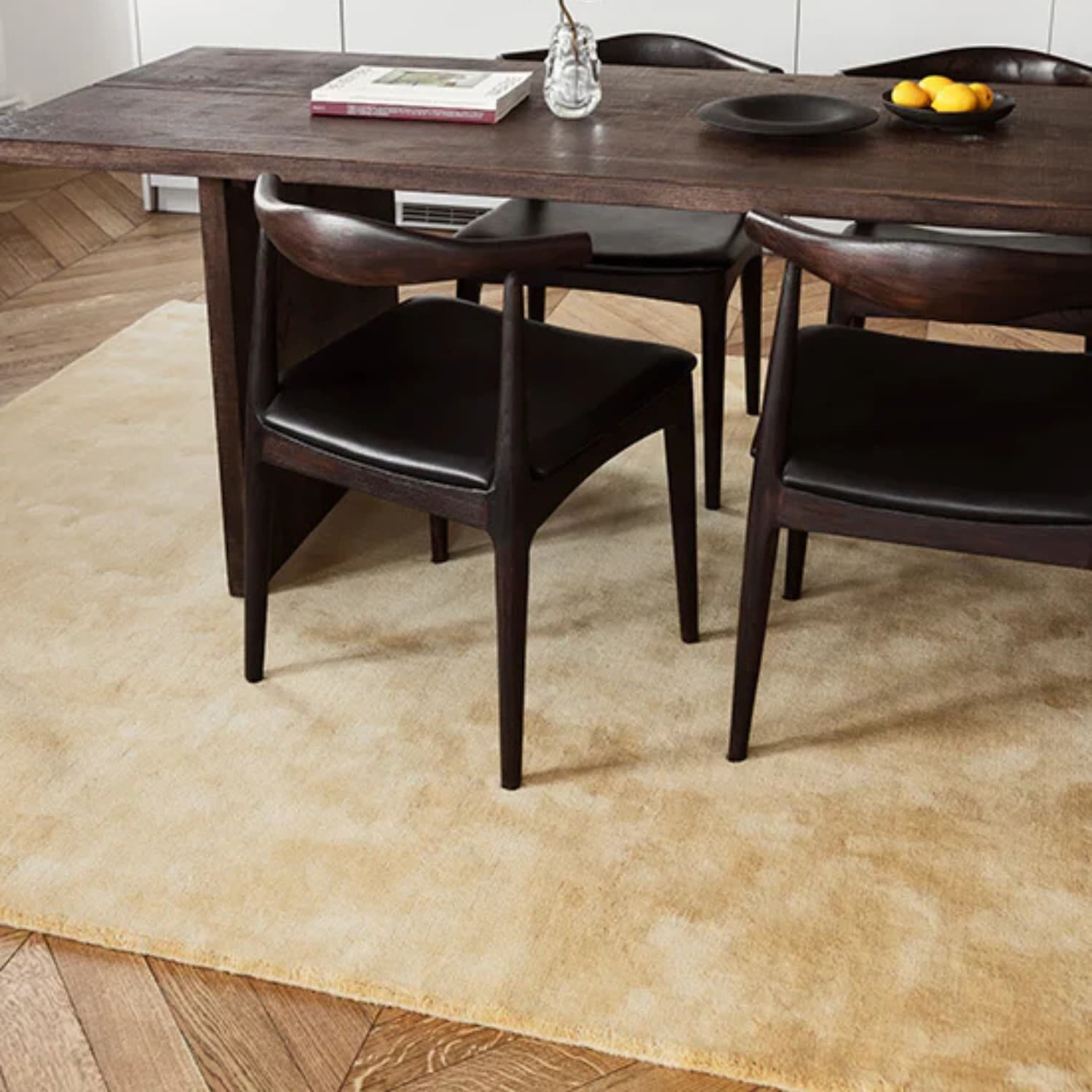 Solid Ullteppe i fargen Harvest Yellow kombinerer klassisk form med en lun og levende gulfarge som gir energi og varme til rommet.
