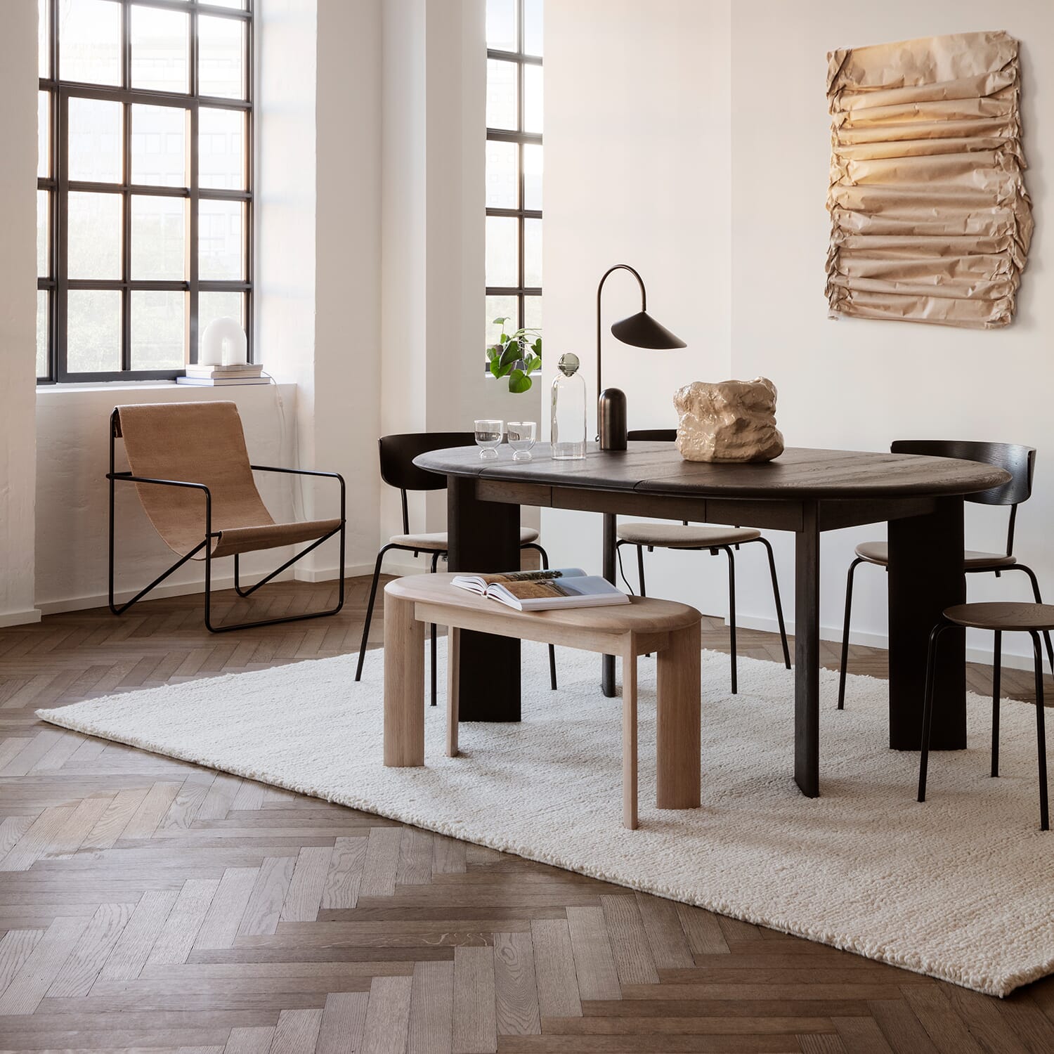 Ease Loop-teppet er vevd med en kombinasjon av tynne og tykkere tråder, noe som gir det en unik mykhet og naturlig tekstur med dybde. Laget av høykvalitets ull, gir teppet en følelse av luksus som føles som å gå på luft. Med sitt klassiske og subtile design, binder det rommet sammen på en elegant måte. Tilgjengelig i to størrelser, passer Ease Loop-teppet perfekt til både stue og soverom.