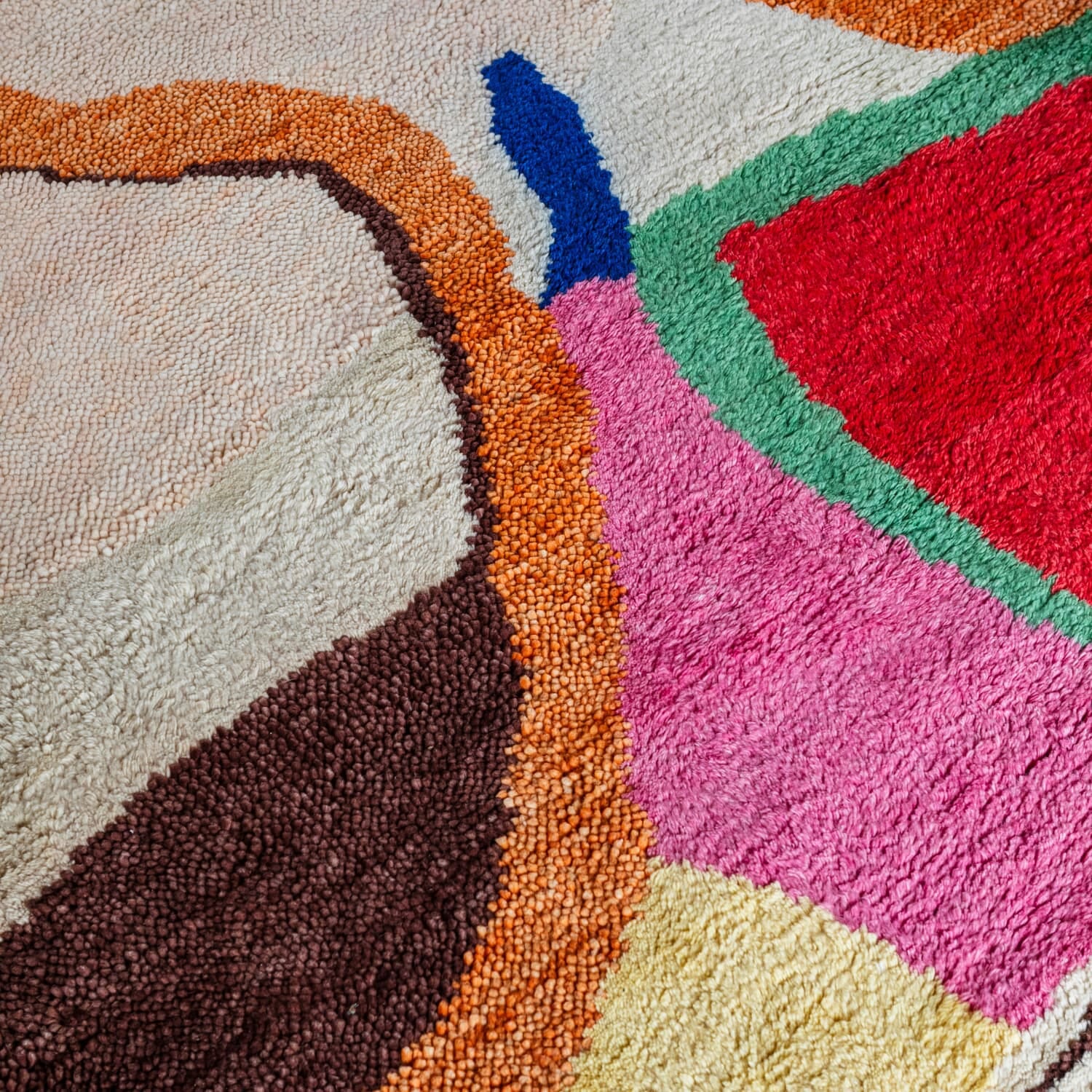 Dette håndlagde teppet er laget av 100 % nyzealandsk ull, verdsatt for sin naturlige mykhet og slitestyrke. Designet gjenspeiler Chontos’ karakteristiske og energiske formspråk, som sammen med LAYEREDs ekspertise innen tekstilhåndverk, resulterer i et teppe som er like mye kunst som interiør.