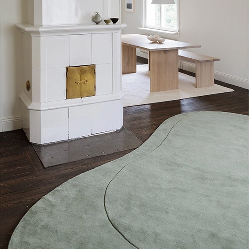 Residue-teppet fra Layered – et stort teppe som skiller seg ut med en organisk stripe som skaper høydeforskjeller. Laget av strukturerte ullfibre, kombinerer dette teppet kunstnerisk design med praktisk funksjonalitet. Residue er mer enn bare et teppe; det tilfører rommet en moderne og sofistikert atmosfære.