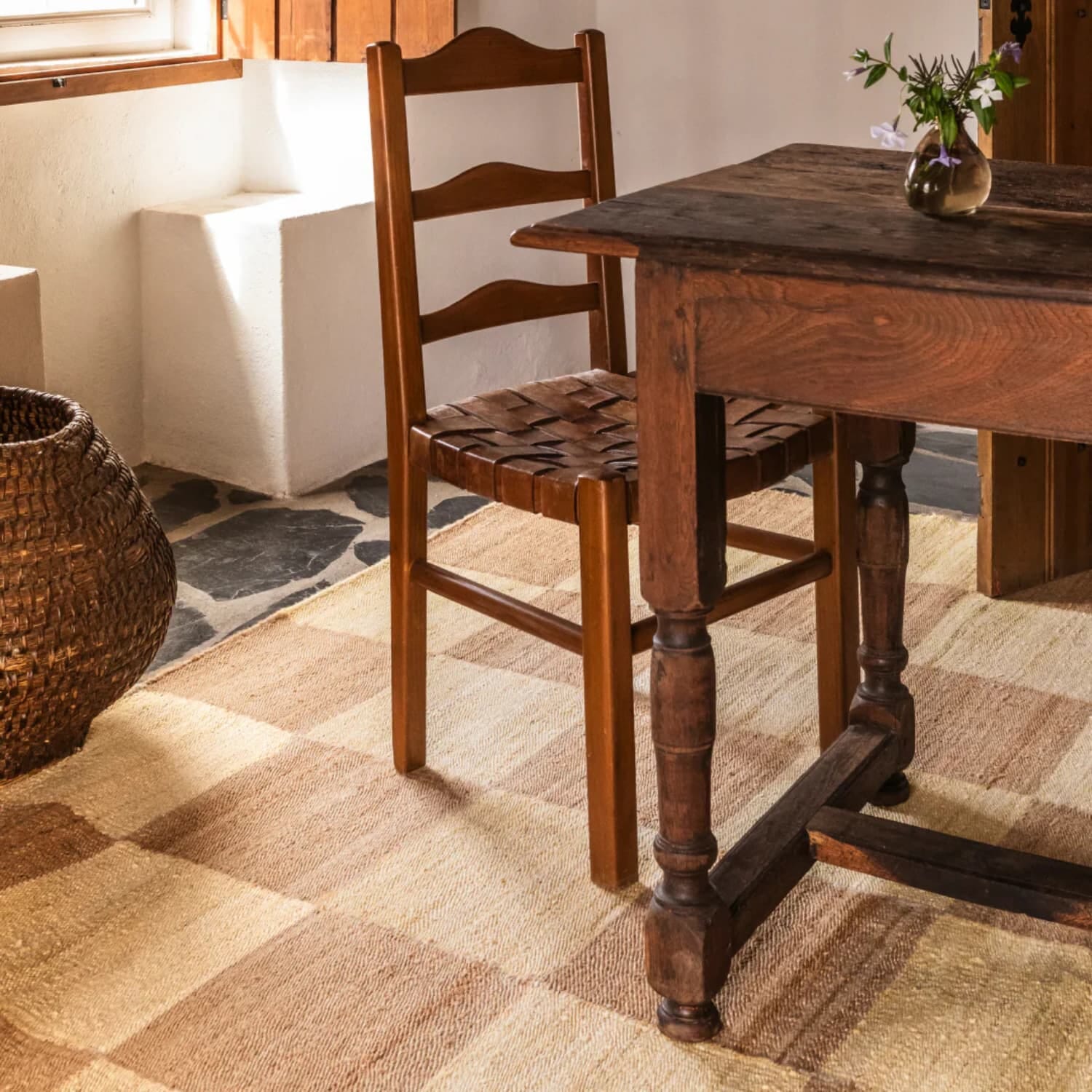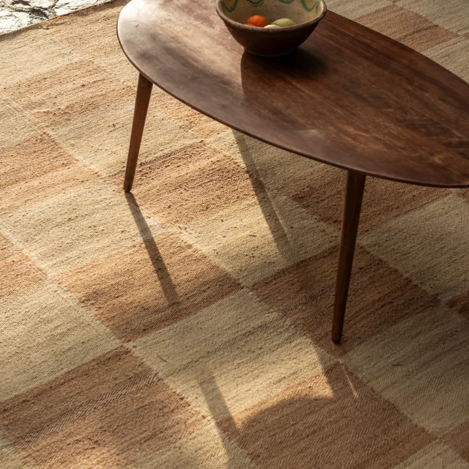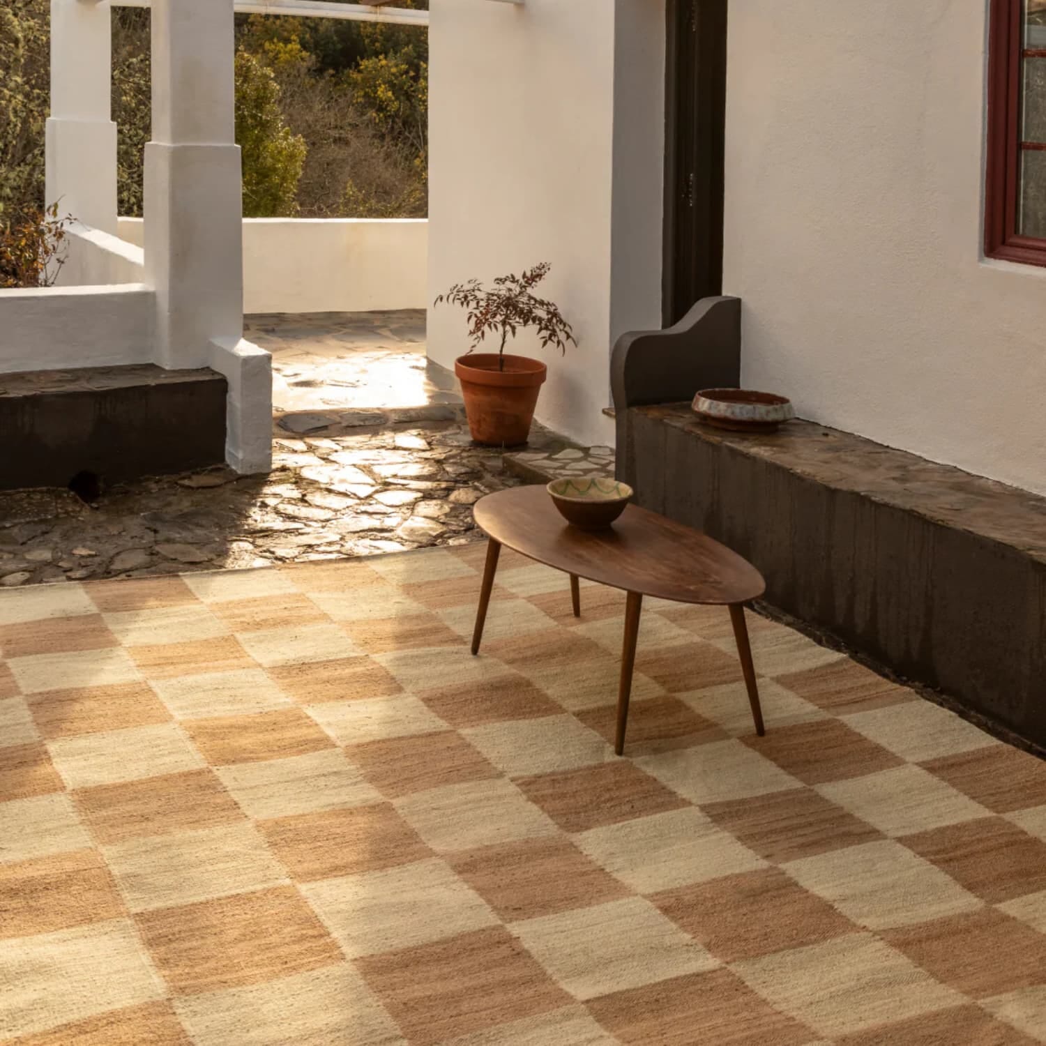 Skap en livlig og varm atmosfære i hjemmet ditt med The Sicilian Checked Daffodil fra Layered – et gulvteppe som kombinerer leken fargebruk med tradisjonelt håndverk.