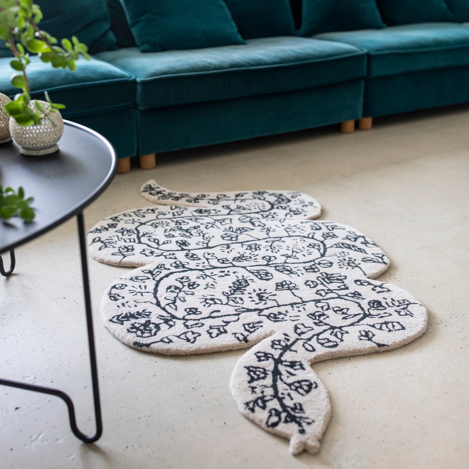 Dette iøynefallende teppet, formet som en slyngende slange dekorert med blomster, kombinerer myke materialer med lekent design. Med sin karakteristiske form og detaljrike motiv tilfører Snake-teppet et unikt visuelt element til rommet – enten det ligger på gulvet eller pryder en vegg.