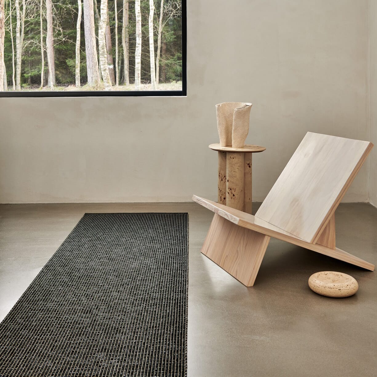 Det som virkelig gjør EMM unikt, er den innovative materialkombinasjonen og den nye veveteknikken, utviklet av Pappelinas vevemester Kim og designer Lina. Denne teknikken skaper små, opphøyde kvadrater som gir teppet en dynamisk struktur. De metalliske nyansene fremhever både det intrikate mønsteret og linets naturlige glans, noe som gir teppet en sofistikert, men samtidig tidløs estetikk.