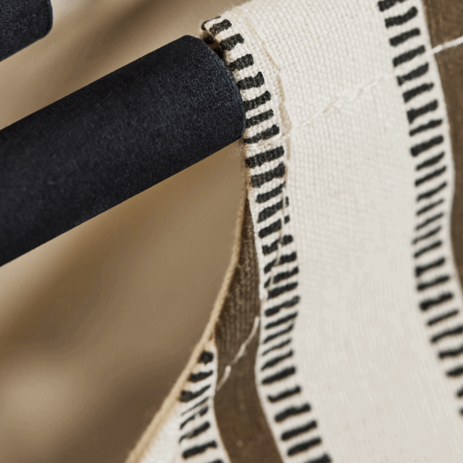 Denne sammenleggbare kurven i lerret kombinerer funksjonalitet med et dekorativt uttrykk, og gir hjemmet ditt en varm og moderne følelse. Kurven er designet med off-white bunn og etnisk-inspirert brunt mønster, som enkelt smelter inn i ulike interiørstiler.
