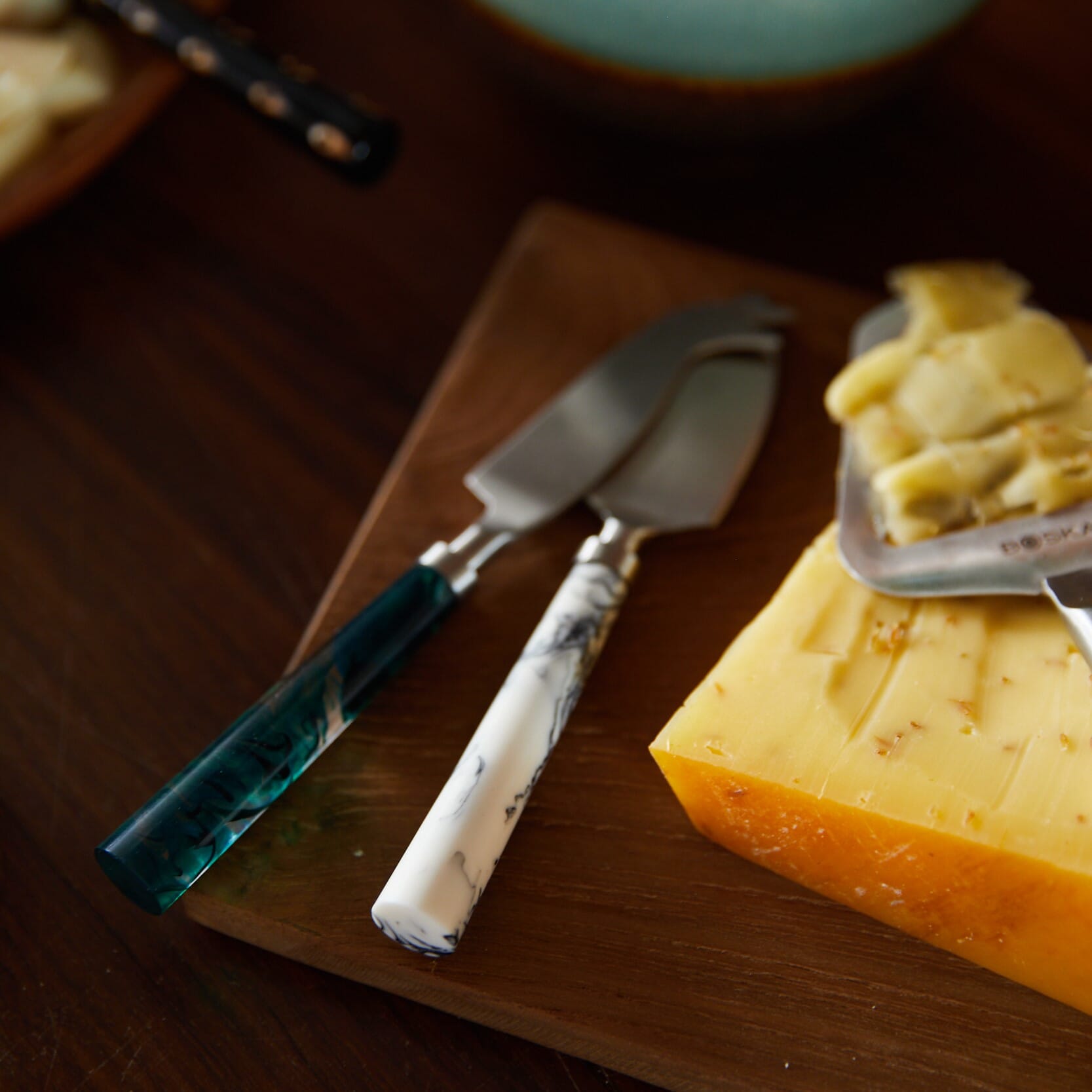 Sett med 3 ostekniver i rustfritt stål fra HK Living, hver med et spennende skaft i friske kystfarger. Hver av knivene har sin egen unike stil og vil gi et stilig preg på ostebrettet ditt. Knivene er laget av rustfritt stål og resin (herdeplast) og kommer i en pen gaveeske.