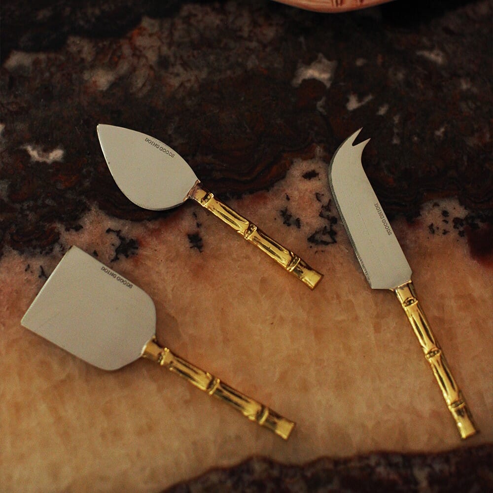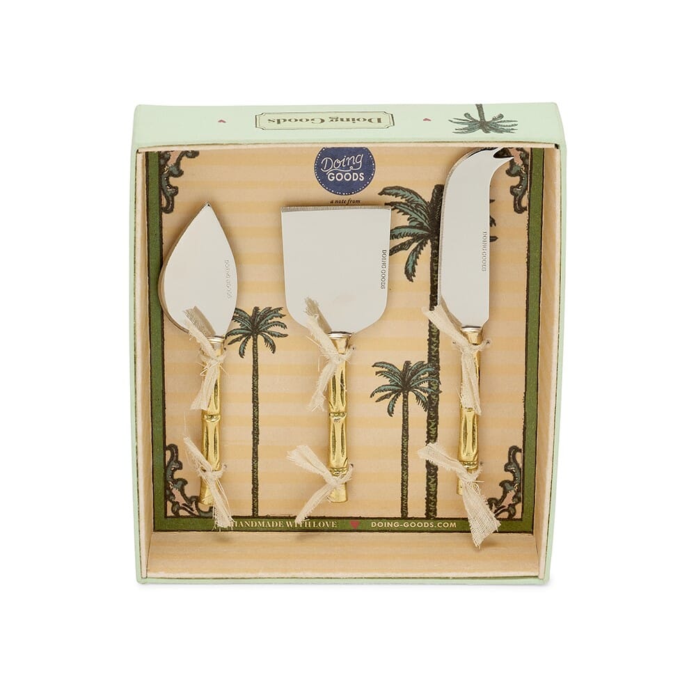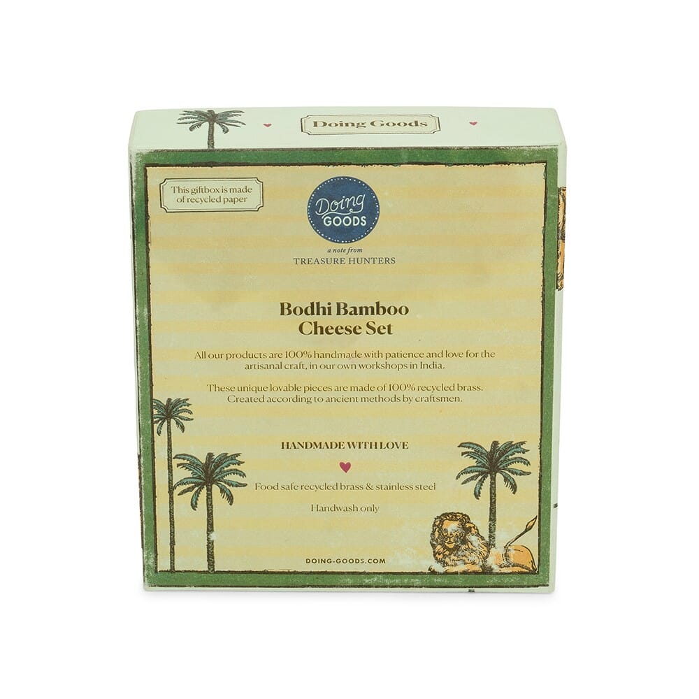Dette vakre settet med 3 Bodhi Bamboo ostekniver gir en leken touch til serveringsbrettet ditt under forrettstid. Vakkert pakket inn i en grønn pastellboks, laget av resirkulert bomullspapir.