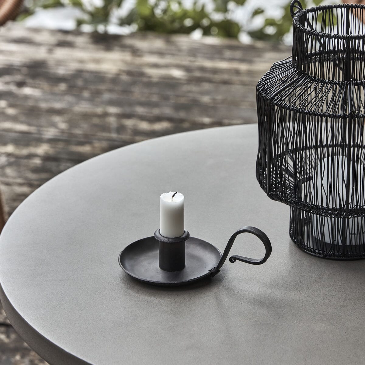 Gi hjemmet ditt et vintage-preg med denne svarte lysestaken fra House Doctor. Designet minner om en gammel kammerstokk som ble brukt til å lyse opp veien eller til sengelektyre før elektrisiteten kom. Lysestaken er enkel å flytte rundt takket være håndtaket. Bruk den som en dekorativ detalj i vinduskarmen eller på et lite bord.