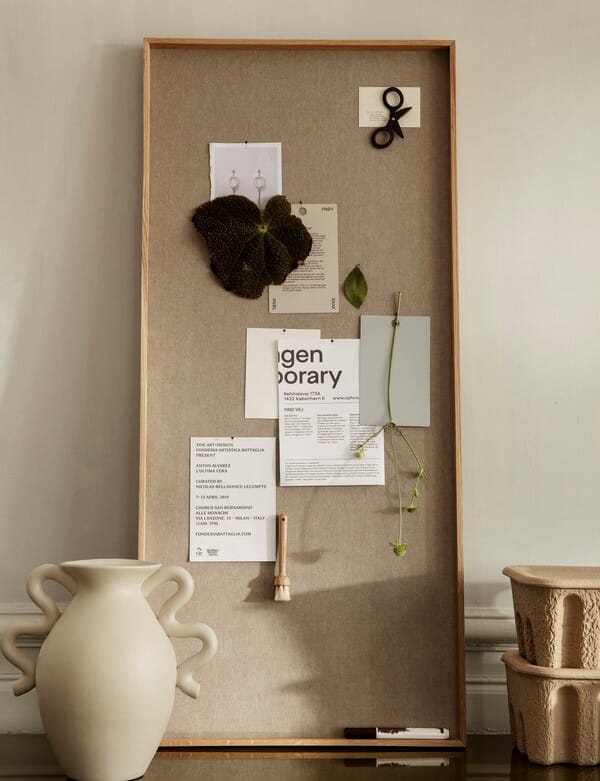 Organiser tankene, inspirasjonen og ideene dine med Scenery Pinboard. Med en elegant eikramme med beige, bomullslinn på en korkbunn, har tavlen et rått og naturlig utseende som passer fint i et moderne hjem. Monter Scenery Pinboard på en tom vegg, eller la den lene seg opp mot den for et mer uformelt utseende.