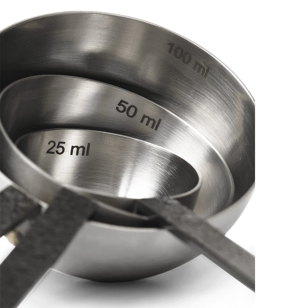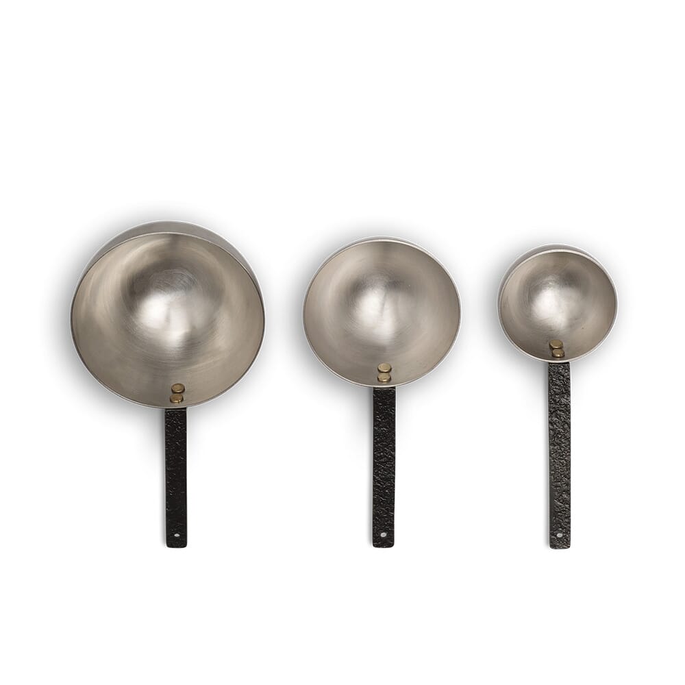 Fine og klassiske måleskjeer fra Ferm Living sin Obra kolleksjon. Obra-kolleksjonen er inspirert av de spanske ordene for "gjerning" og "handling", og er laget med ren og industriell estetikk i bakhodet. Med det rustfrie børstede stålet legger den til en moderne touch, samtidig som den er laget for å var lenge. Håndtakene med ujevn kontur får skjeene til å se røffe ut, samtidig som de ikke leder varme om du skal måle varme ting som smeltet smør osv.