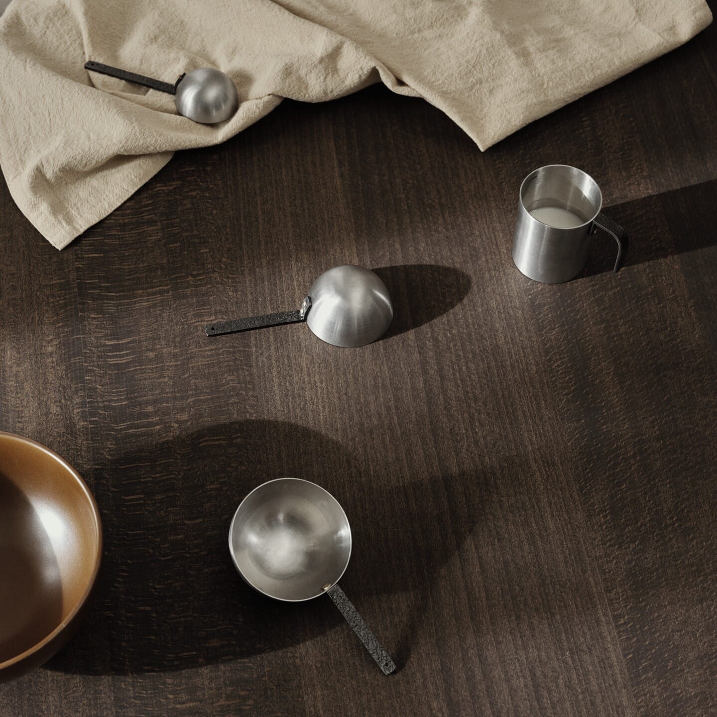 Rustikt målebeger fra fra Ferm Living sin Obra kolleksjon. Obra-kolleksjonen er inspirert av de spanske ordene for "gjerning" og "handling", og er laget med ren og industriell estetikk i bakhodet. Med det rustfrie børstede stålet legger den til en moderne touch, samtidig som den er laget for å var lenge. Bruk den i bakingen eller matlagingen din, eller bare til pynt på kjøkkenet.