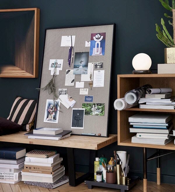 Få styr på dine tanker, inspirasjoner og ideer med denne fine oppslagstavelen fra Ferm Living. Oppslagstavelen har en lekker ramme av sortbeiset asketre og beige bomullslerret på en korkbase. Disse to komponenter skaper sammen en rå og naturlig look som passer godt inn på kontoret, kjøkkenet eller på soverommet.