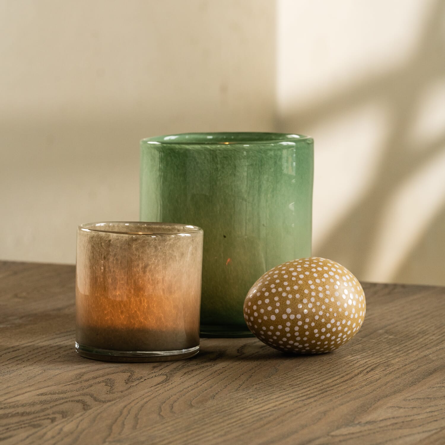Denne lysholderen fra danske IB Laursen er laget av munnblåst opalglass og har et enkelt, sylinderformet design. Glasset er gjennomfarget, så fargen vil ikke falme ved rengjøring. Du kan plassere blokklys eller telys direkte i den for en vakker lyseffekt, da det opale glasset sprer lyset på en herlig, myk og behagelig måte. Vær oppmerksom på at "Venecia" lysholderne ikke er helt like i høyde, vekt og tykkelse på glasset, siden de er håndlaget ved munnblåsing.