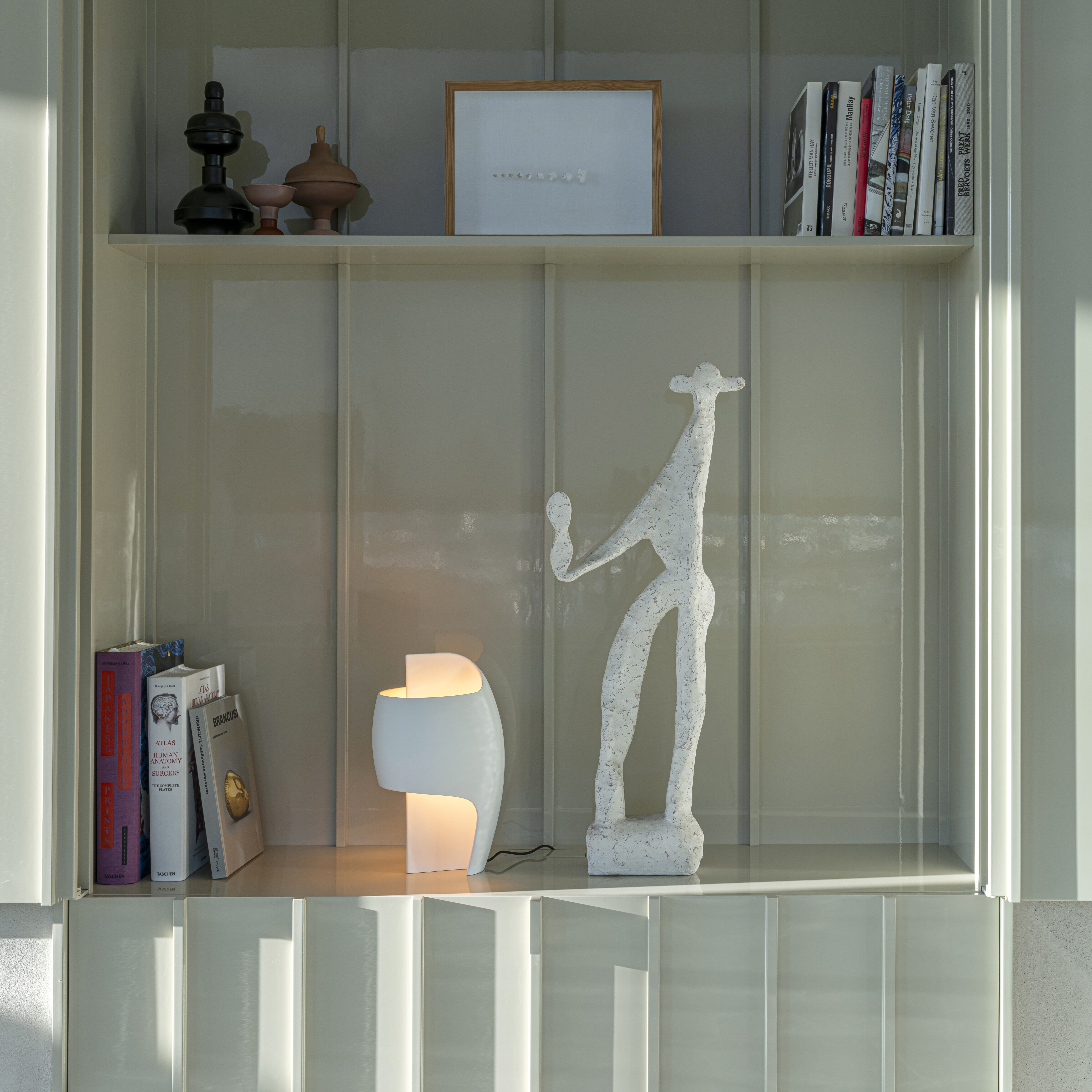 På dagtid fremstår Lampe B som en rolig, hvit skulptur – en enkel, men elegant form som tilfører ethvert rom en følelse av ro. Når kvelden faller på, forvandles den til en kilde av beroligende lys som sprer en følelse av varme og trygghet. Hver lampe er et uttrykk for Dreyfus’ oppriktige tilnærming til kunst, der lyset skaper et rom for refleksjon og indre ro.