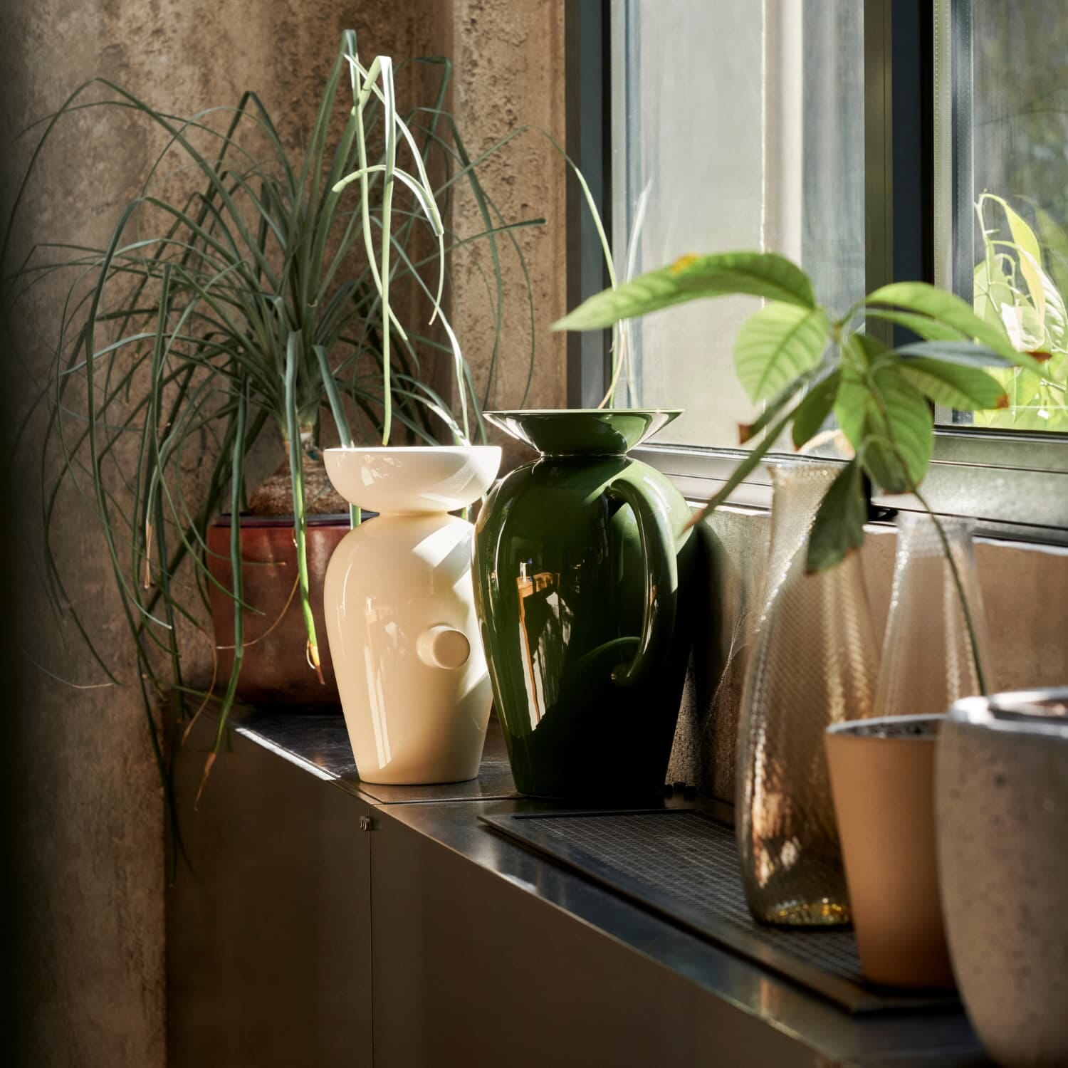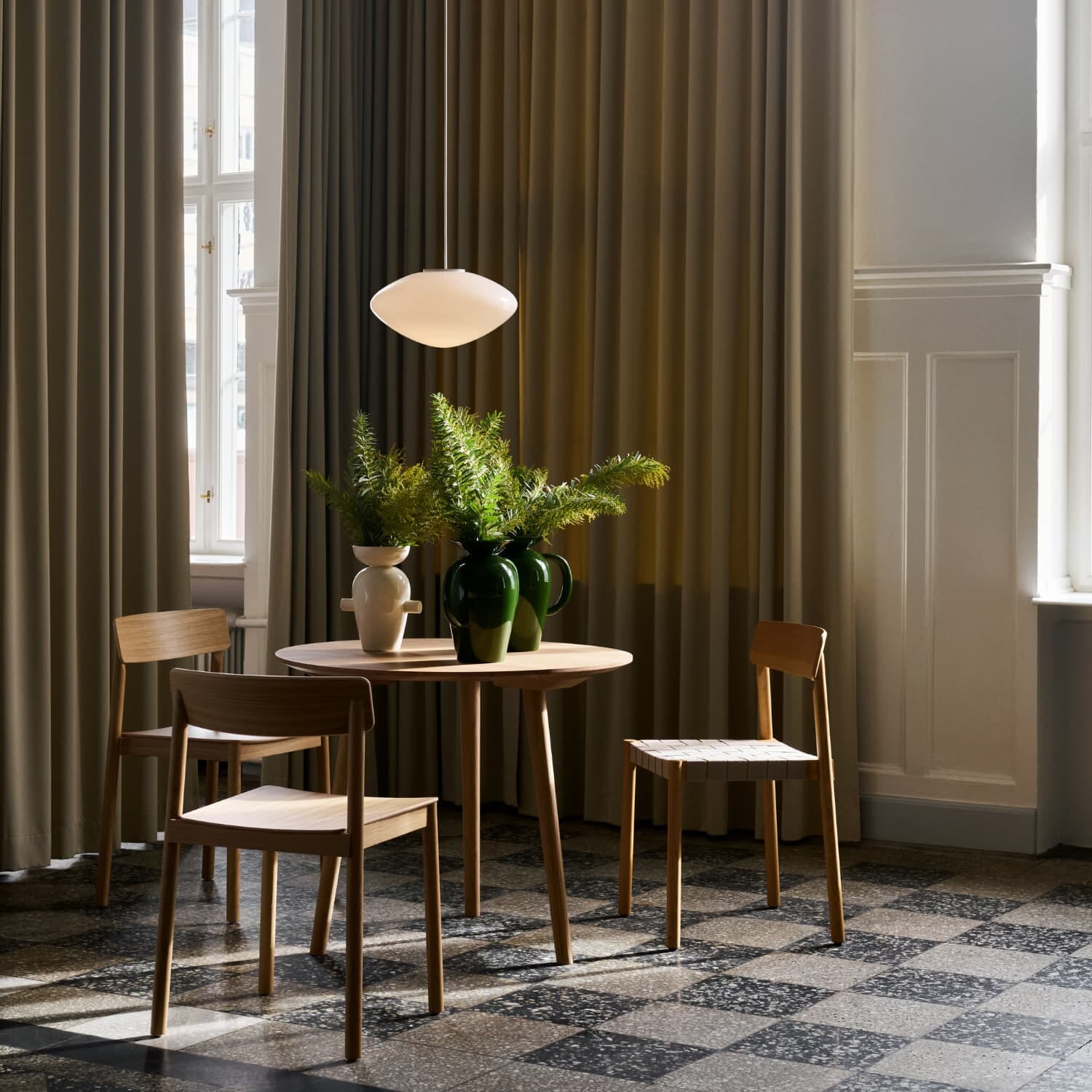 Med sin slanke hals inviterer vasen til bevisst blomsterarrangering, der færre og nøye utvalgte blomster fremhever både vasens form og fargens dybde. Resultatet blir en balanse mellom funksjon og estetikk, og en påminnelse om å stoppe opp og skape små, mindfulle øyeblikk i hverdagen.