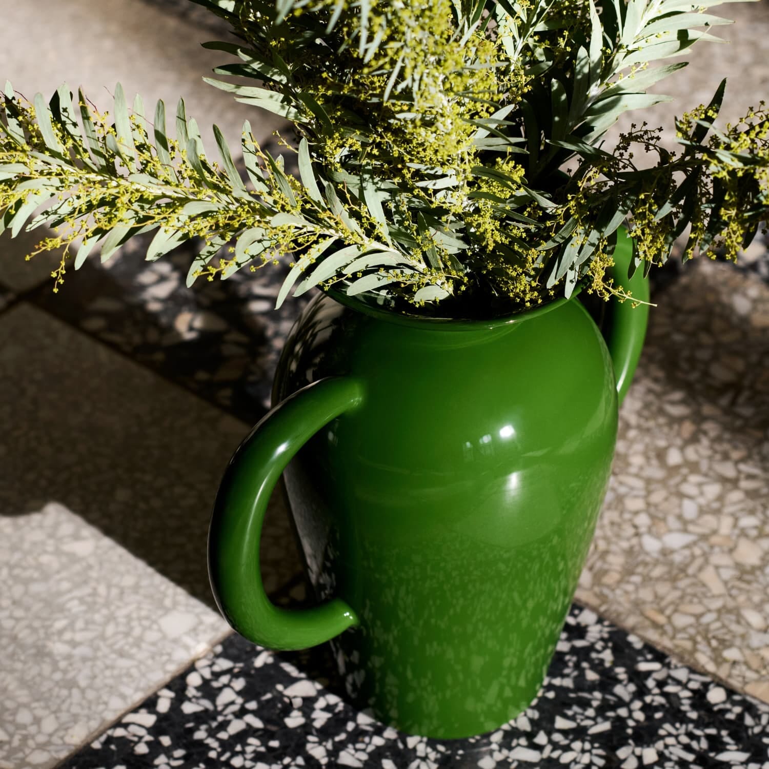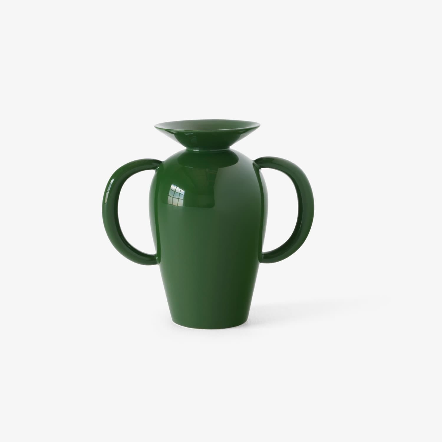 Den kraftfulle formen og den dype Emerald-grønne glasuren gjør den til et blikkfang i ethvert rom – like mye et kunstobjekt som en vase.