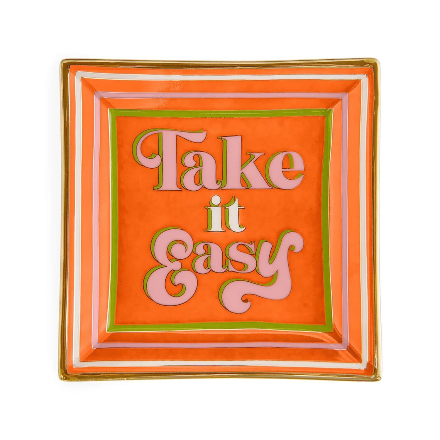 Take It Easy Square Tray er et lekent og dekorativt fat fra Deep Thoughts-kolleksjonen, designet for å gi hverdagen et snev av humor og stil.