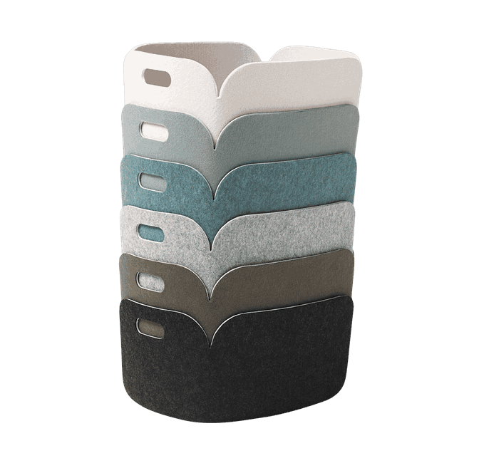 Restore-serien fra Muuto er en serie praktiske kurver med en moderne vri. De er laget av fibre fra resirkulerte plastflasker og er tilgjengelig i en rekke størrelser og farger. Perfekt til oppbevaring av klær, leker, ved eller andre gjenstander.